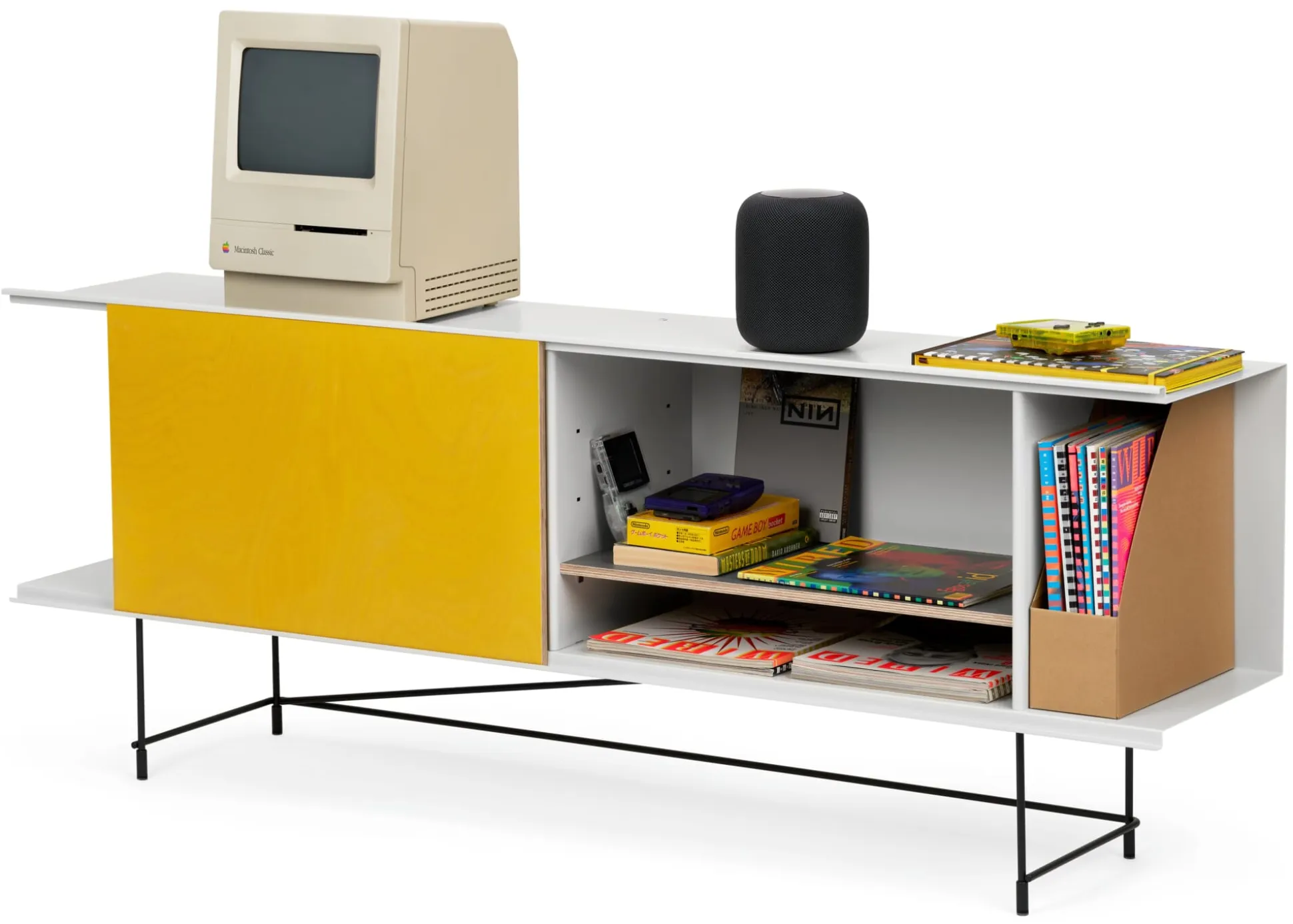 Korpus: Der Korpus ist das Herzstück von FIP. Er kann mit der Wandschiene als Regal an die Wand montiert werden oder mit dem Sockel zum Sideboard kombiniert werden.