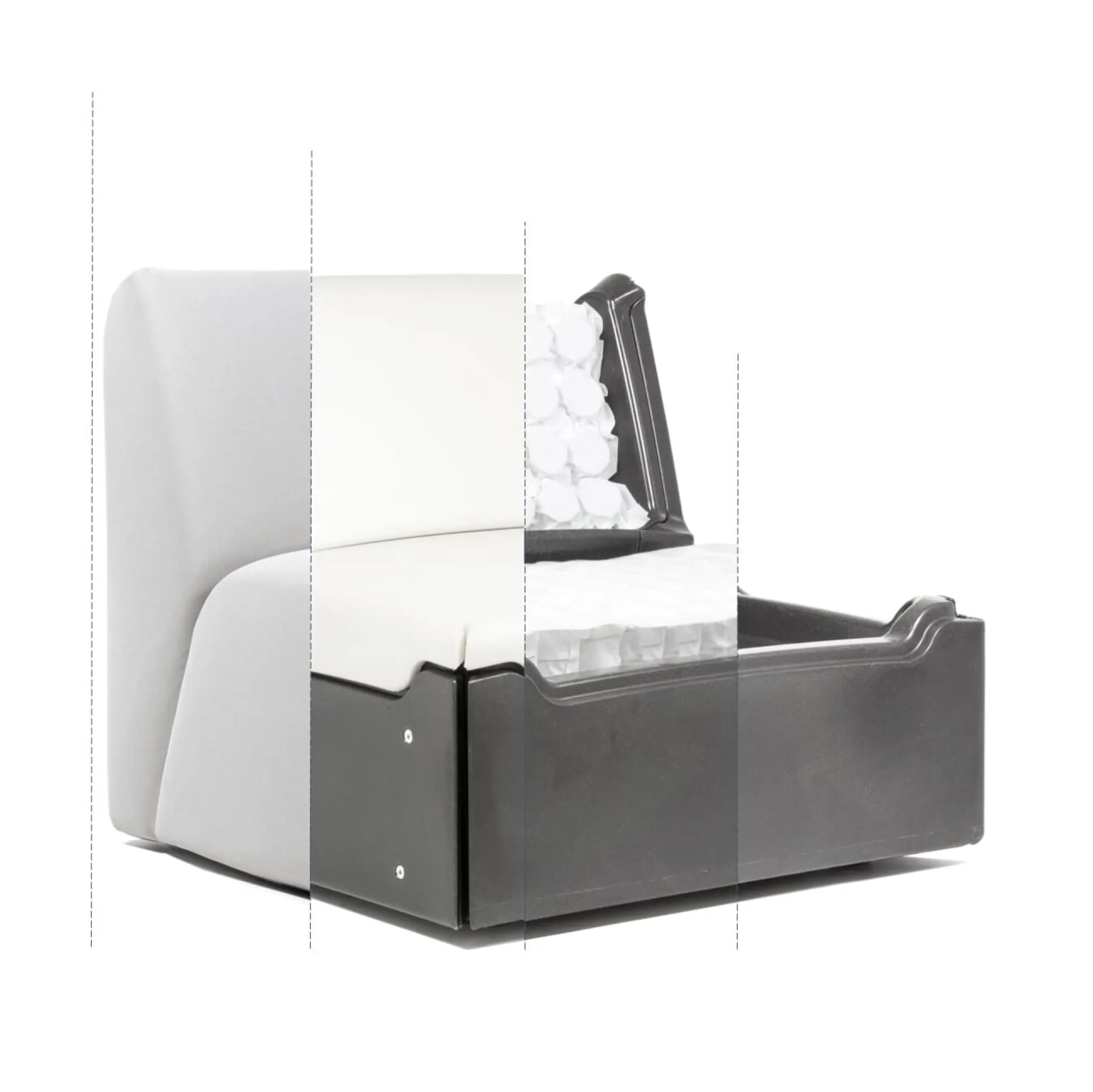 Material: Korpus: 100 % Kunststoff, recycelt; Unterfederung: Taschenfederkern, Polyurethan; Bezug: 100 % Polyester, recycelt