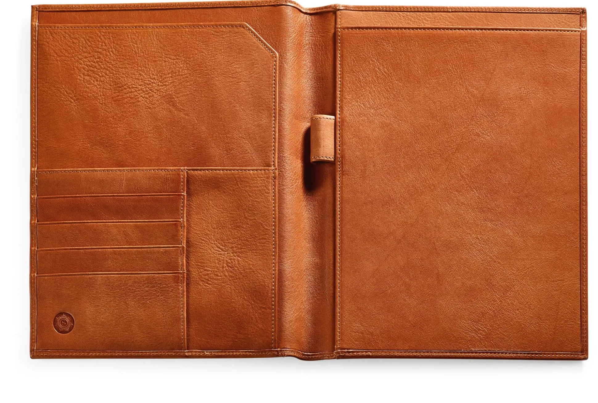 Die Reise-Schreibmappe stellt ein kleines mobiles Büro für die Privatkorrespondenz dar. Sie nimmt alles auf, was auf Reisen nötig ist, um handgeschriebene Briefe in ausreichender Menge und ansehnlicher Form zu expedieren. Rechts findet ein DIN-A5-Block Platz, links gibt es Unterteilungen für Briefumschläge, Visitenkarten, Kreditkarten oder auch schlicht für bereits gemachte Notate. Mit Stiftschlaufe.
