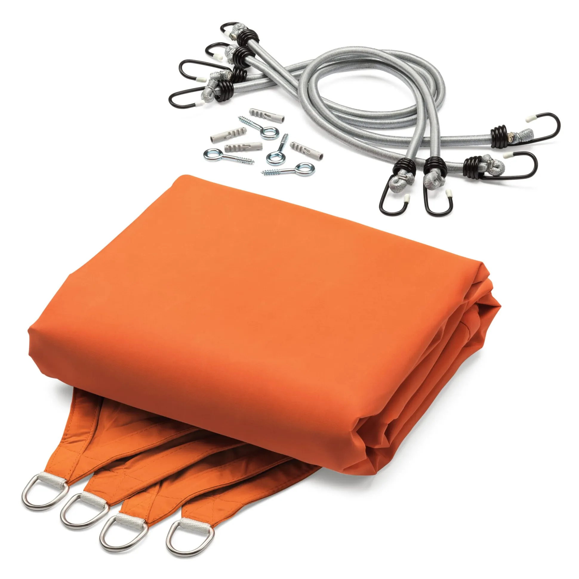 Dauerelastische Spanngurte lassen das Sonnensegel immer gut aussehen und schützen es vor harten Windböen. Das gesamte Kleinmaterial ist im Lieferumfang enthalten.