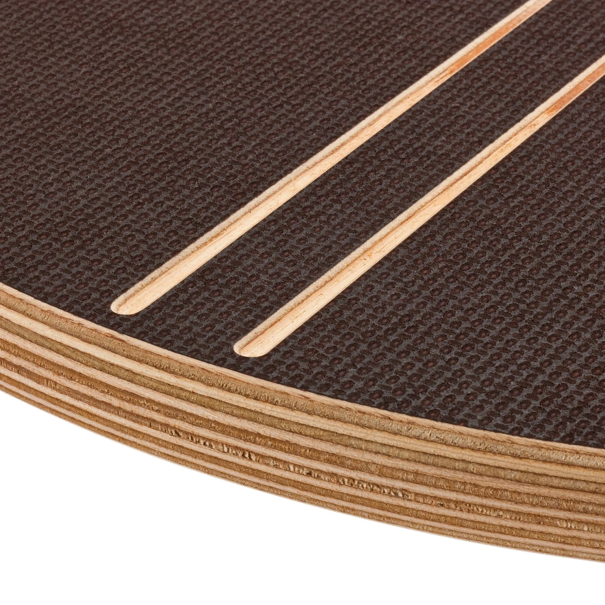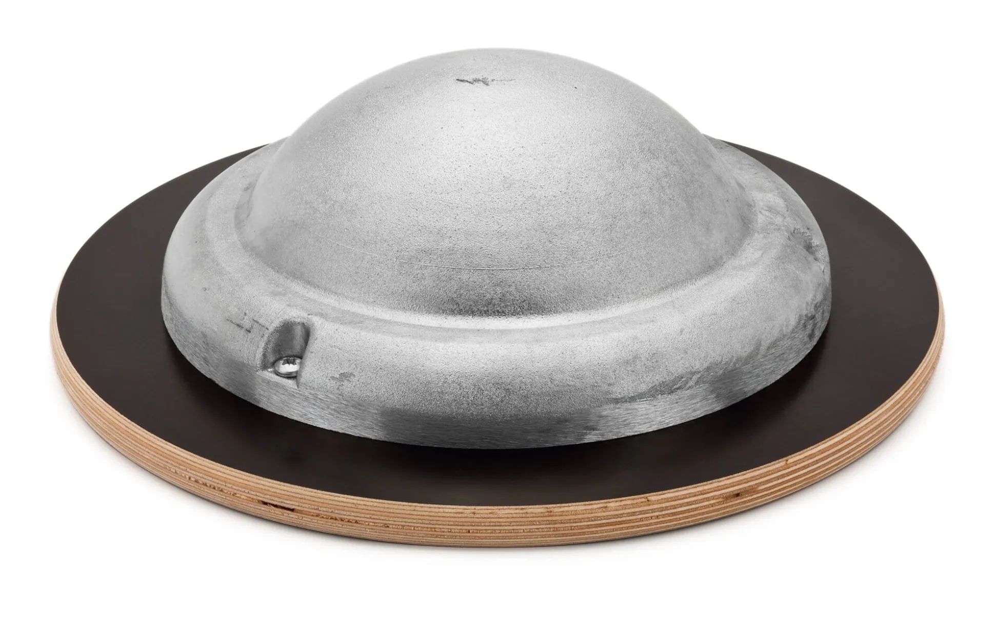Auflageplatte Schichtholz (Stärke 1,7 cm), mit Siebdruckplatte beschichtet. Halbkugel Aluminium mit Stahlkern. Höhe 11,5 cm, Ø 36,5 cm. Gewicht 3,5 kg. Belastungsgewicht max. 120 kg. Mit Übungsanleitung und passender Schaumstoffunterlage.