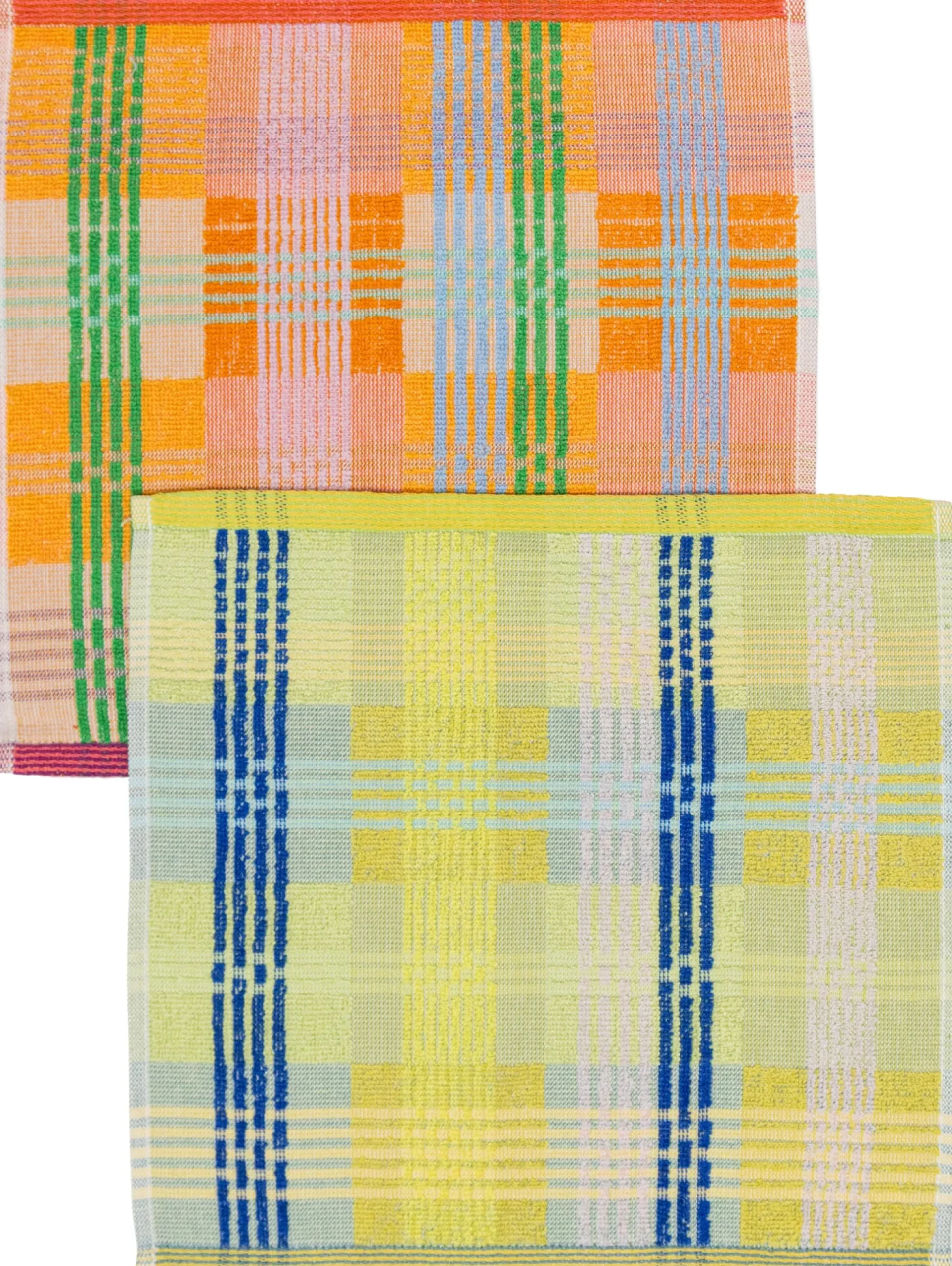 Farbstarkes Spültuch aus Garnresten aus der Textilindustrie. Das Textil aus reiner Baumwolle sorgt mit seiner Strukturkombination für einen angenehmen Griff und effektive Reinigung: In dem aus Profiküchen bekannten und farbig neu interpretierten Karomuster wechseln sich Frottiergewebe und flachgewebte Bereiche ab. Erstere sorgen für Saugkraft, letztere für die geschmeidige Handhabung. Zusammen bilden sie ein putzkräftiges Profil. Schöner Hingucker in der Küche.