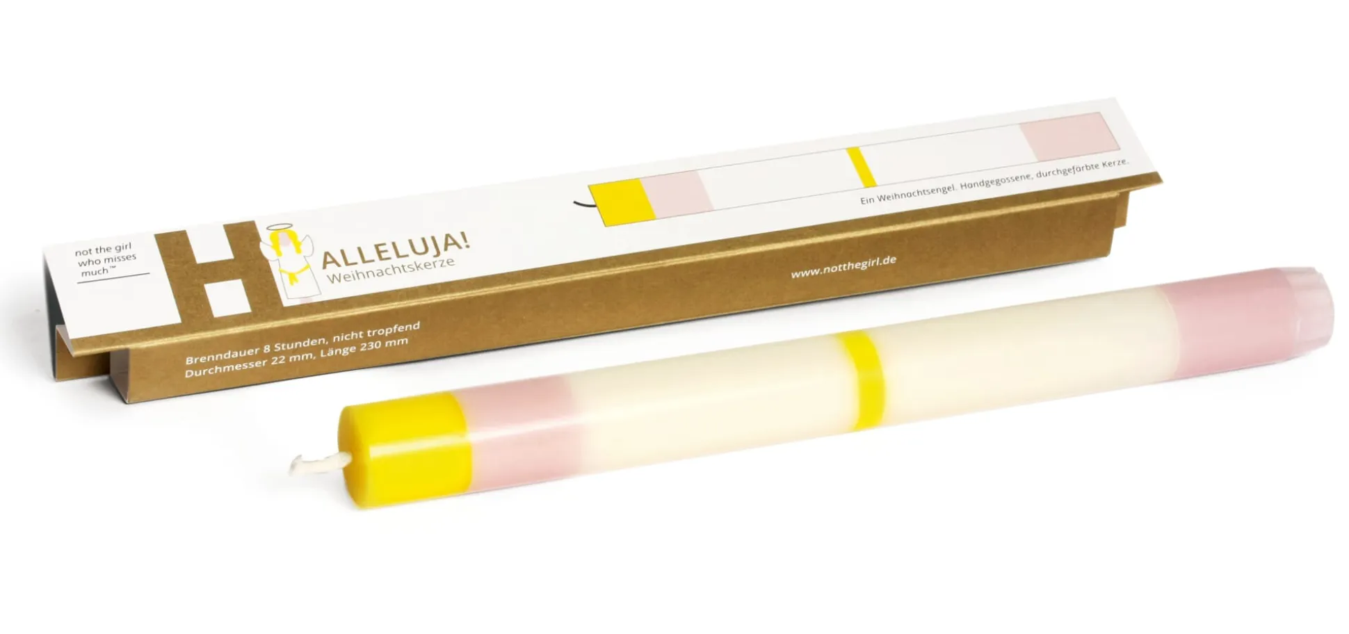 - 8–9 Stunden Brenndauer mit durchgefärbtem, nicht tropfendem Wachs