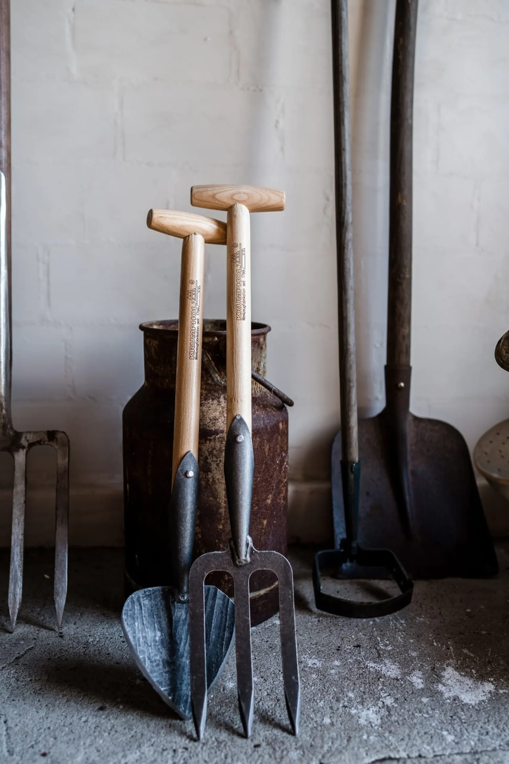 Sie ist das ideale Gartengerät für alle Arbeiten in kniender Haltung und in engen, dicht bepflanzten Beeten, in denen vorsichtig um flach wachsende Wurzeln herum gejätet und gelockert werden muss. Der Form nach schlägt die Staudengabel mit ihren urtümlichen geschmiedeten Zinken aus Mangan-Bor-Stahl eine Brücke zwischen Spaten und Blumenkelle, sie kann daher auch beim Umpflanzen von Stauden oder Ausstechen von Wurzeln eine gute Hilfe sein. Bestens eignet sie sich auch zum Auflockern des Bodens oder Vorbereiten von Pflanzlöchern in schon bepflanzten Beeten. Bei all diesen Tätigkeiten ermöglichen das geringe Gewicht und der Aufbau des Werkzeugs mit dem verkürzten Stiel und dem gerade angesetzten Funktionsteil ein handgelenkschonendes Arbeiten.