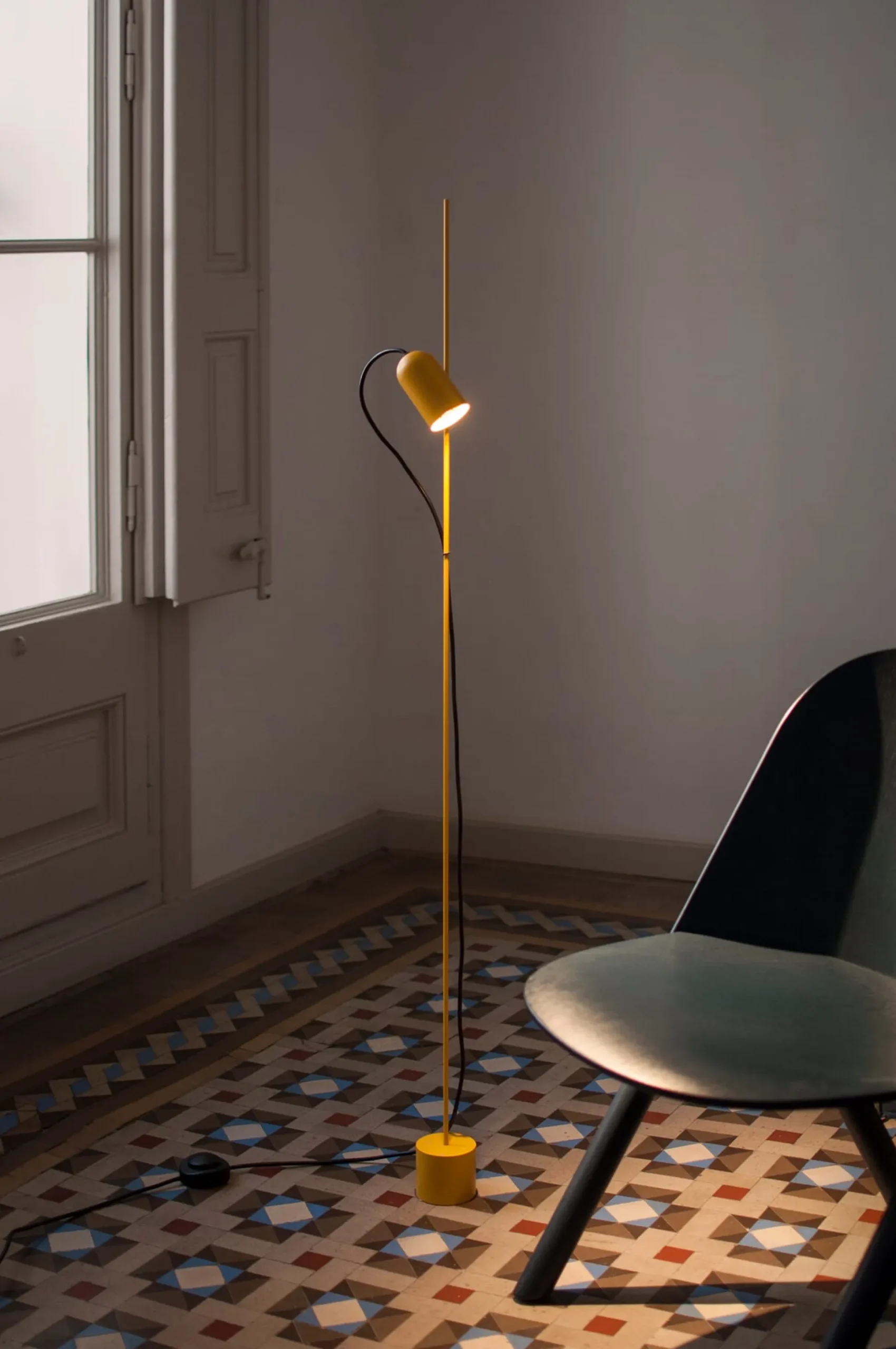 Der Name dieser Leuchten-Serie ist eine Anlehnung an ihre ursprüngliche Bestimmung: Fa ist der spanische Begriff für die Musiknote F – die filigranen Leuchten wurden zum Ausleuchten von Kunstwerken aus der Malerei im Rahmen einer Ausstellung im Opernhaus von Barcelona entwickelt. Und den Bezug zur Musik sieht man auch an ihrer Form: Der feine Stab aus Stahl erinnert im Zusammenspiel mit dem über einen Magneten an ihm befestigten und verschiebbaren Strahler an eine Musiknote. Die massive Basis sorgt für die nötige Standfestigkeit, das 3,20 m lange Kabel für Bewegungsfreiheit – des Strahlers am Stab und der Stehleuchte im Raum. Die Leuchte ist dimmbar.