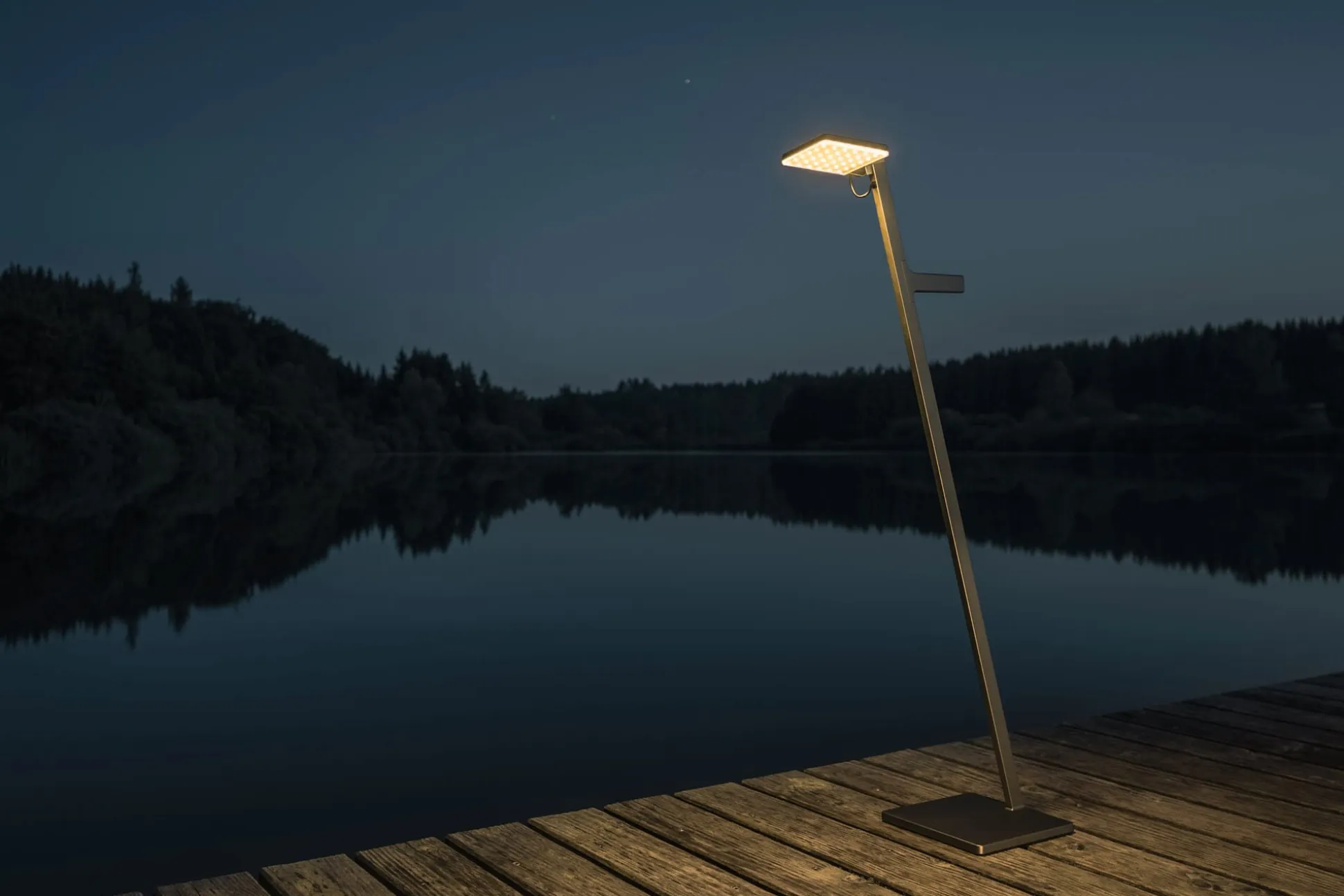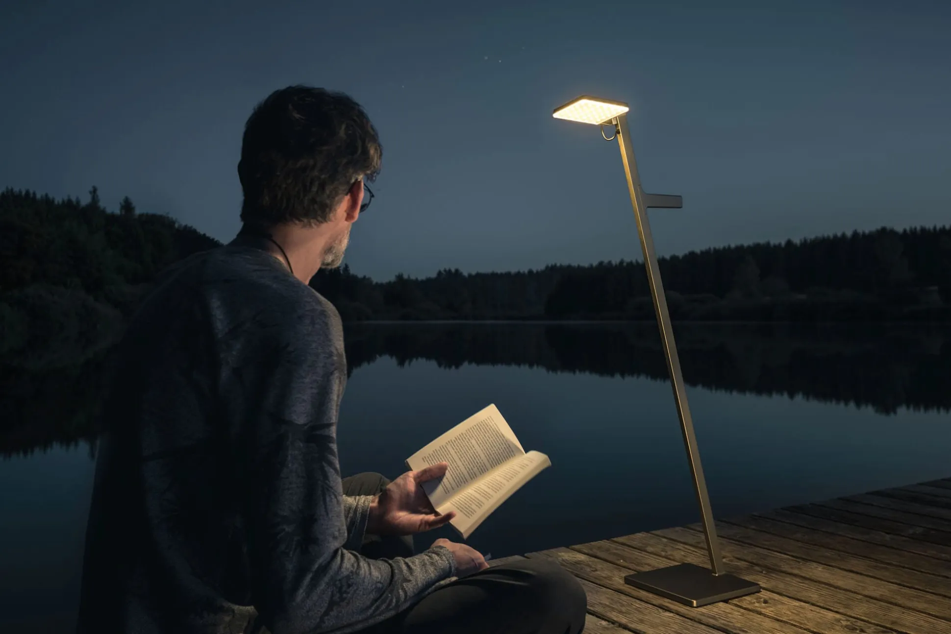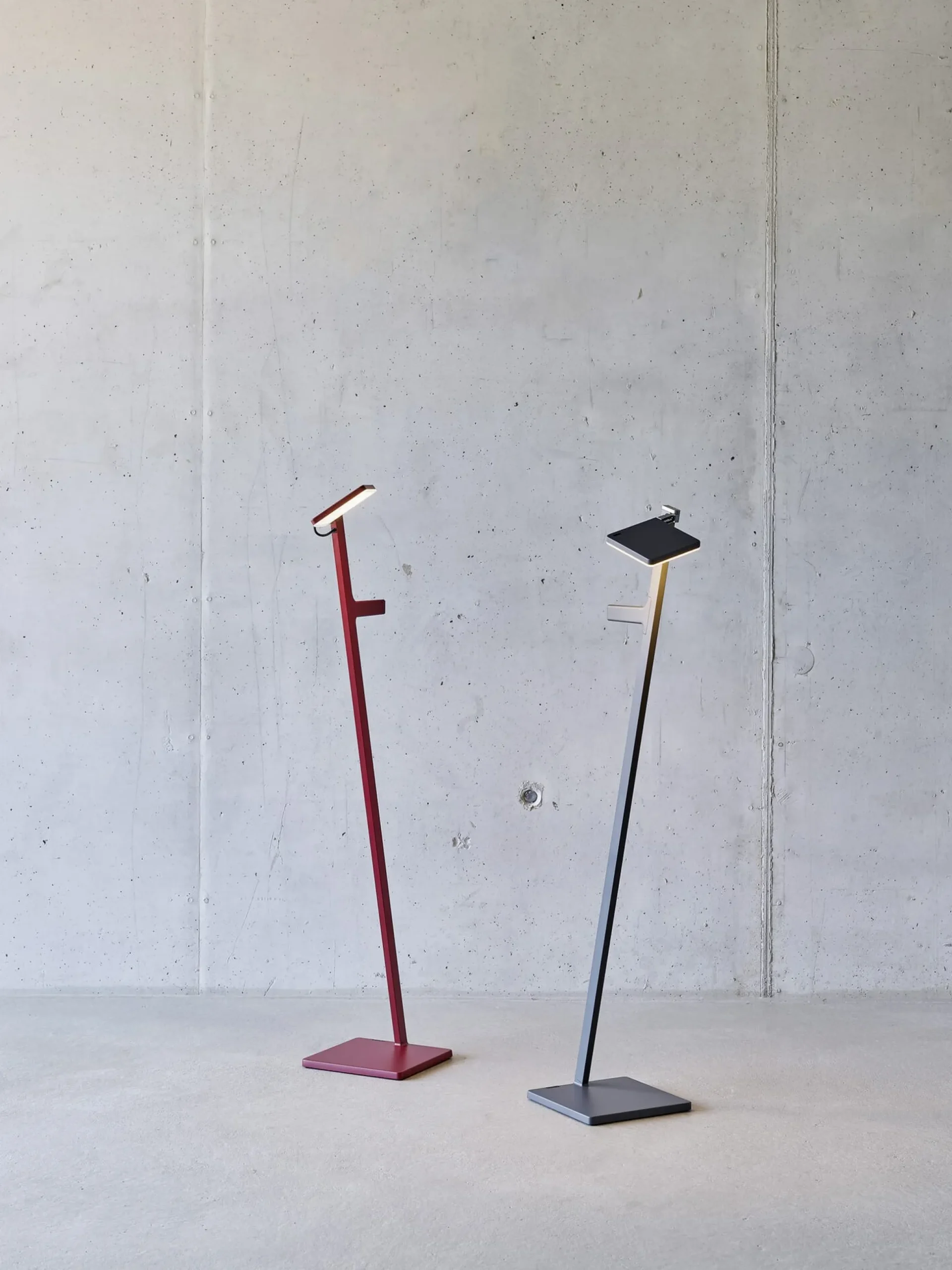 Licht zum Mitnehmen: Ob zum Socken sortieren auf dem Fußboden, zum Lesen im Wohnzimmersessel oder als Arbeitsleuchte zu jeder Gelegenheit, diese 101 cm hohe, leistungsstarke Akku-Stehleuchte ist flexibel einsetzbar. Und das zeigt sie auch – der ausgeformte Griff am Leuchtenstab fordert selbstreferenziell zum Mitnehmen auf.