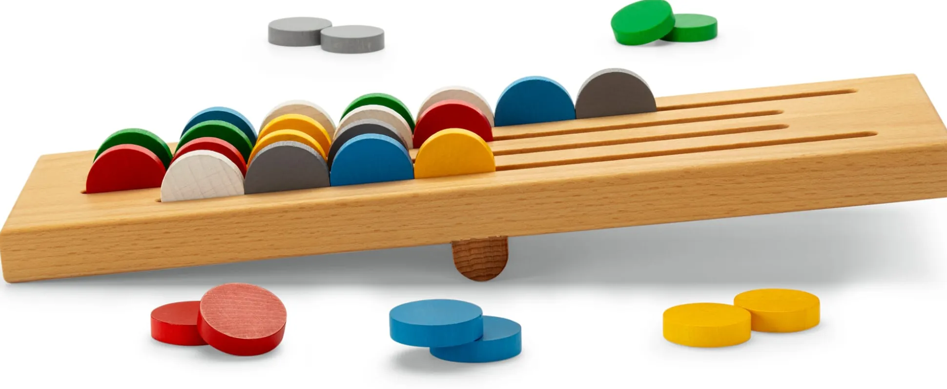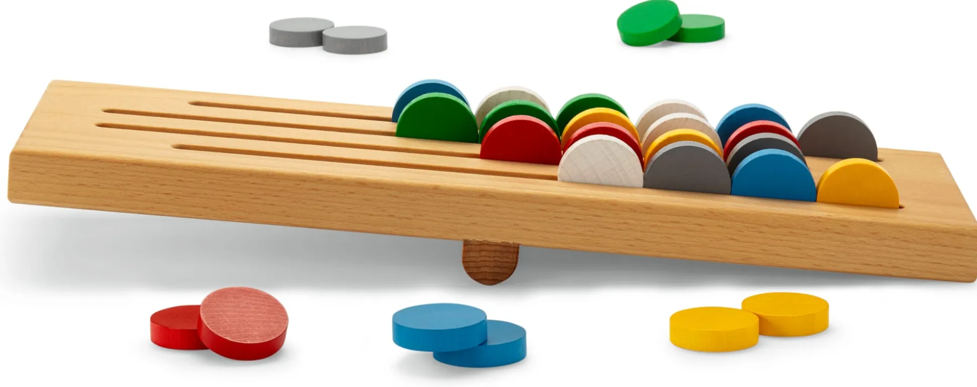 Und immer wieder wird gewippt, immer wieder rollen die Spielsteine zu unvorhergesehener Anordnung. Das unablässige, in der Hitze des Spiels auch schon mal ungestüm ausfallende Wippen und Rollen schadet weder den Spielsteinen noch dem Spielfeld: Sämtliche Elemente sind aus massivem, geöltem Buchenholz gearbeitet und im wahrsten Wortsinne hartnäckig. Die Rillen sind präzise aus dem Holz gefräst, die Steine passgenau darauf abgestimmt, sodass das Spiel reibungslos verläuft. Ob Taktikgenie oder Glückskind: Sehen Sie Ihren Sieg schon heranrollen?