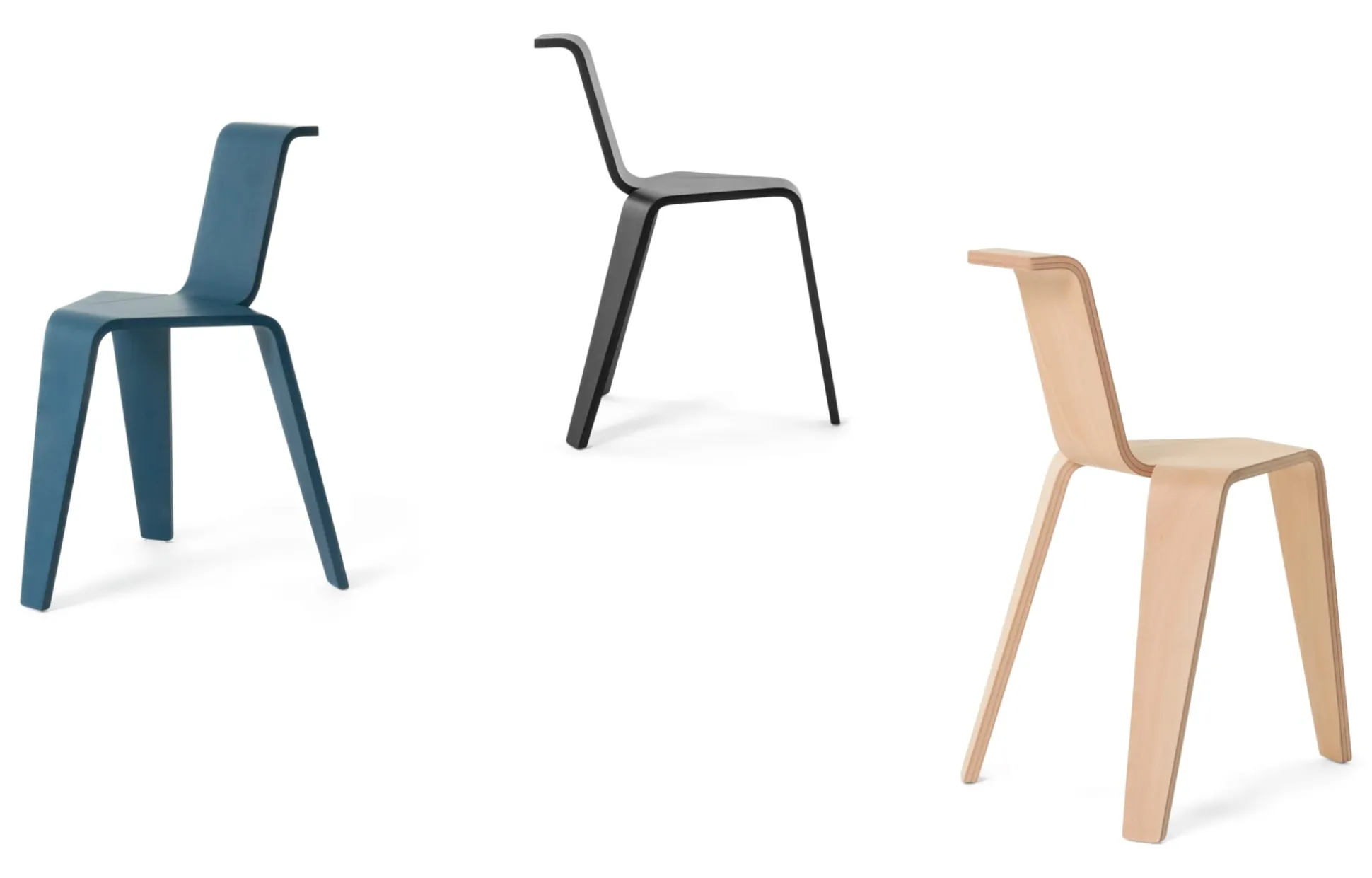 Ein formales Spiel dreier korrespondierender Formholzteile – AKA ist ein hybrides Möbelstück zwischen Stuhl, Objekt und Hocker: ausgewogene Proportion in formaler Perfektion, in der Konstruktionsweise den Stand der Formholztechnik markierend. Der zierliche Dreibeiner bietet überraschenden Sitzkomfort, ist somit bei geringem Raumangebot ein gut nutzbares Möbelstück oder objekthafte Ergänzung mit vielfältigem Nutzen in Wohnraum, Schlafraum, Flur oder Bad. In Italien aus zertifiziertem Holz produziert.