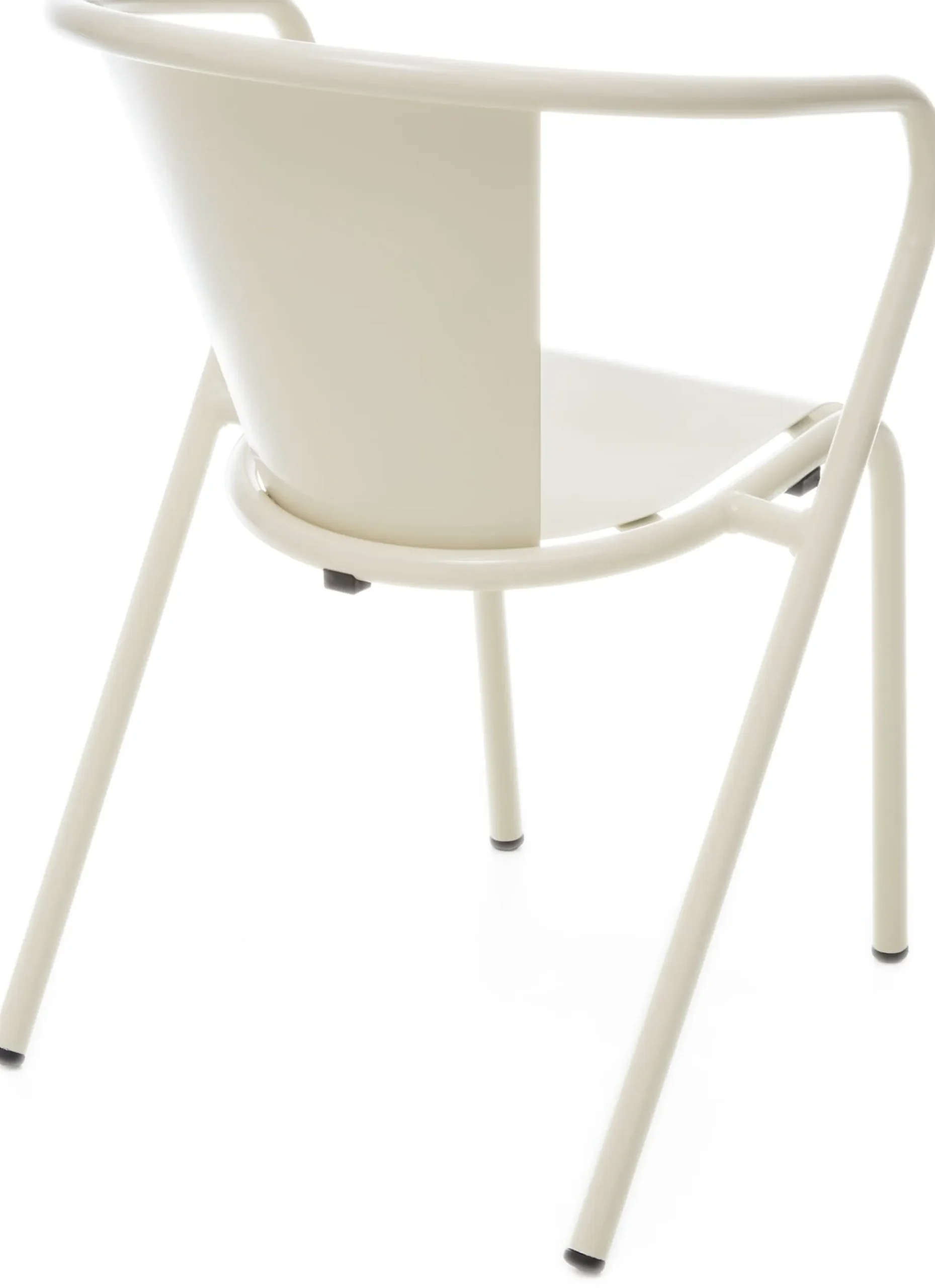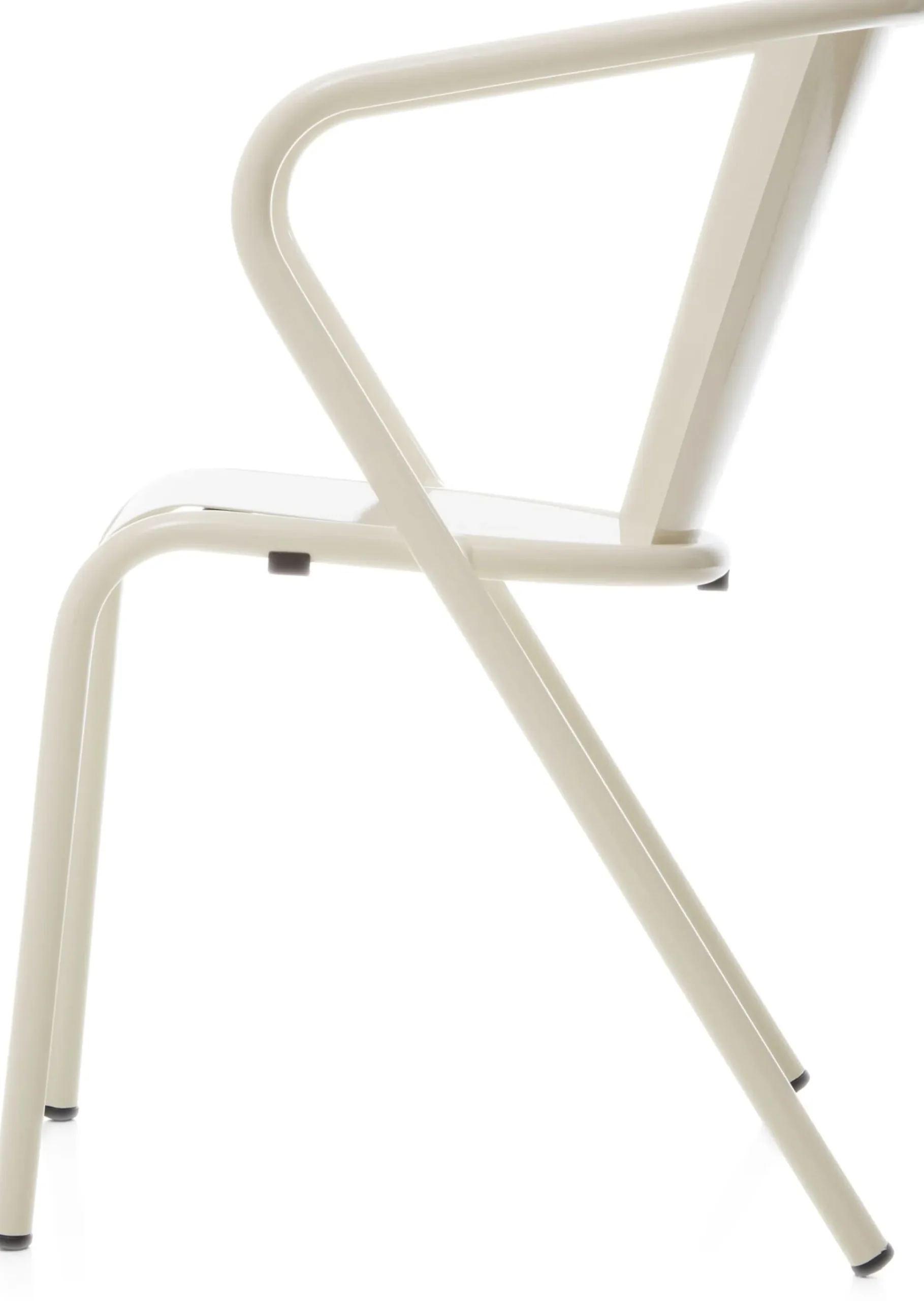 Portugiesische Ikone: Seit den 1950er-Jahren produziert und aus dem öffentlichen Bild Portugals nicht wegzudenken ist dieser schöne Stuhl aus Stahl, wetterfest pulverbeschichtet. Dank seiner Formgebung und seinem leicht abfallenden Sitzwinkel sitzt man in ihm sehr komfortabel und entspannt – nicht nur beim Café Galão. Schöne Sitzgelegenheit für den Ess-, Lese- und Sonnenplatz. In der Auswahl an attraktiven Farben verbirgt sich hinter den Versionen Perlweiß, Taubenblau und Blassgrün eine Besonderheit: Sie gehören zu den Farben, die die Stadtverwaltung Lissabons als Farben zur öffentlichen Bestuhlung freigegeben hat.