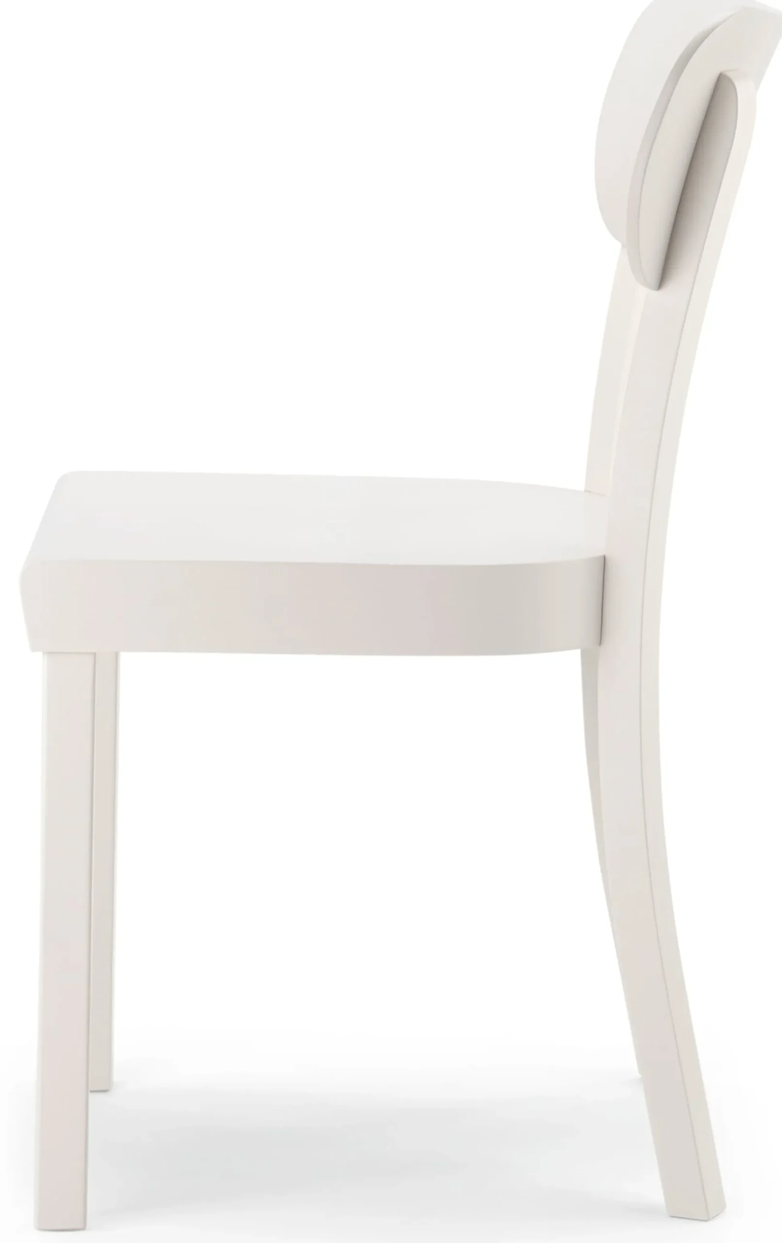 Was uns an ihm besonders gefällt ist seine gestalterisch und formal unkapriziöse Art. Er ist ein Stuhl, wie er im Buche steht: Die vorderen Vierkantbeine gerade, die hinteren leicht geschweift, die Rückenlehne geschwungen, die Sitzfläche fast gerade mit leichter Sitzmulde. Seine insgesamt solide Konstruktion sowie die holz- und konstruktionstechnisch interessante Verschränkung der vorderen Sitzzarge mit den Vorderbeinen machen jede weitere Querverstrebung zwischen den Stuhlbeinen überflüssig. Sitz und Rückenlehne aus Buchenschichtholz, Beine und Zargen aus massiver Buche.