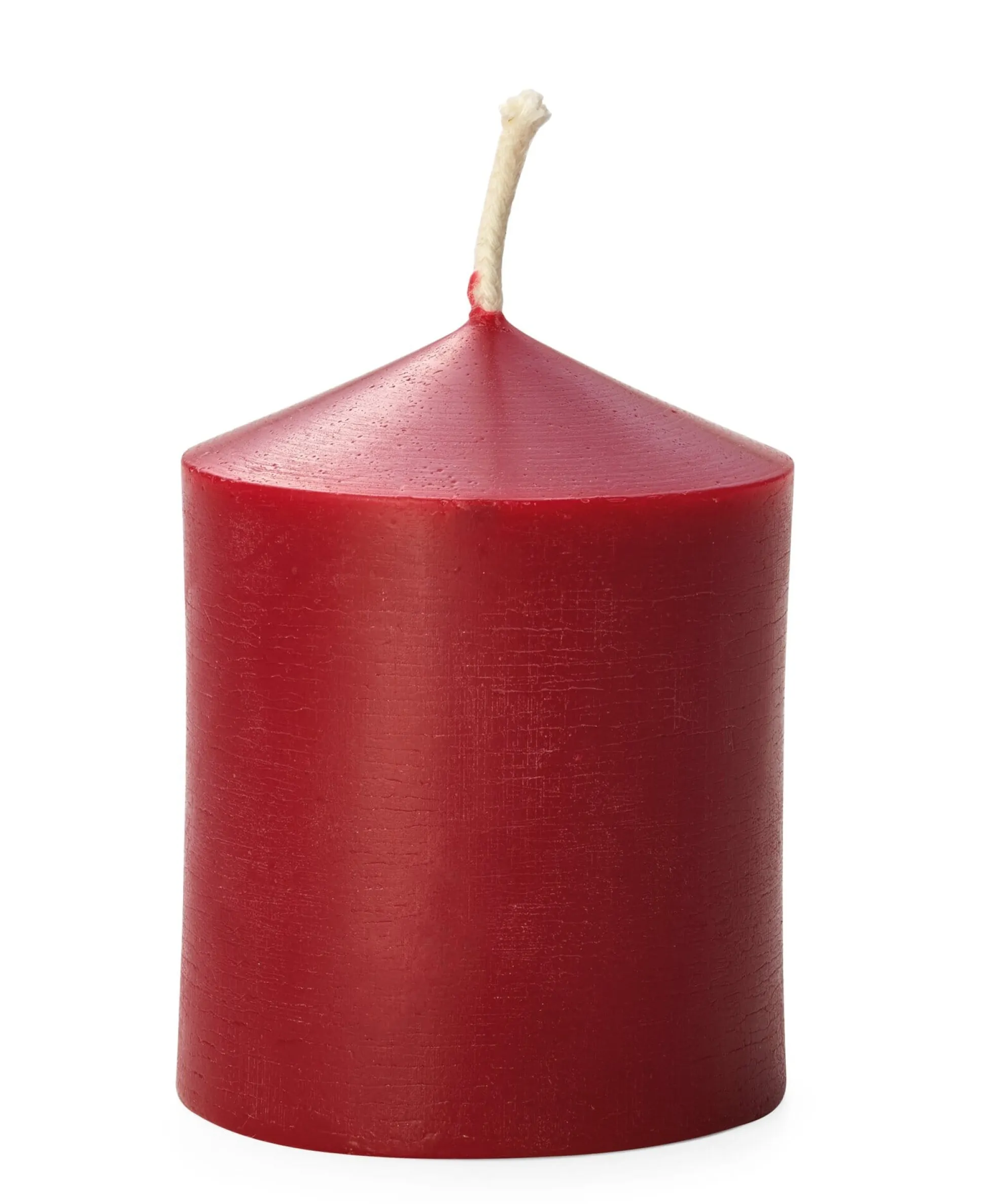 Advents- und Gesteckkerze aus 100% Bienenwachs, mit roten Farbpigmenten durchgefärbt. Baumwolldochte. In zwei Größen.