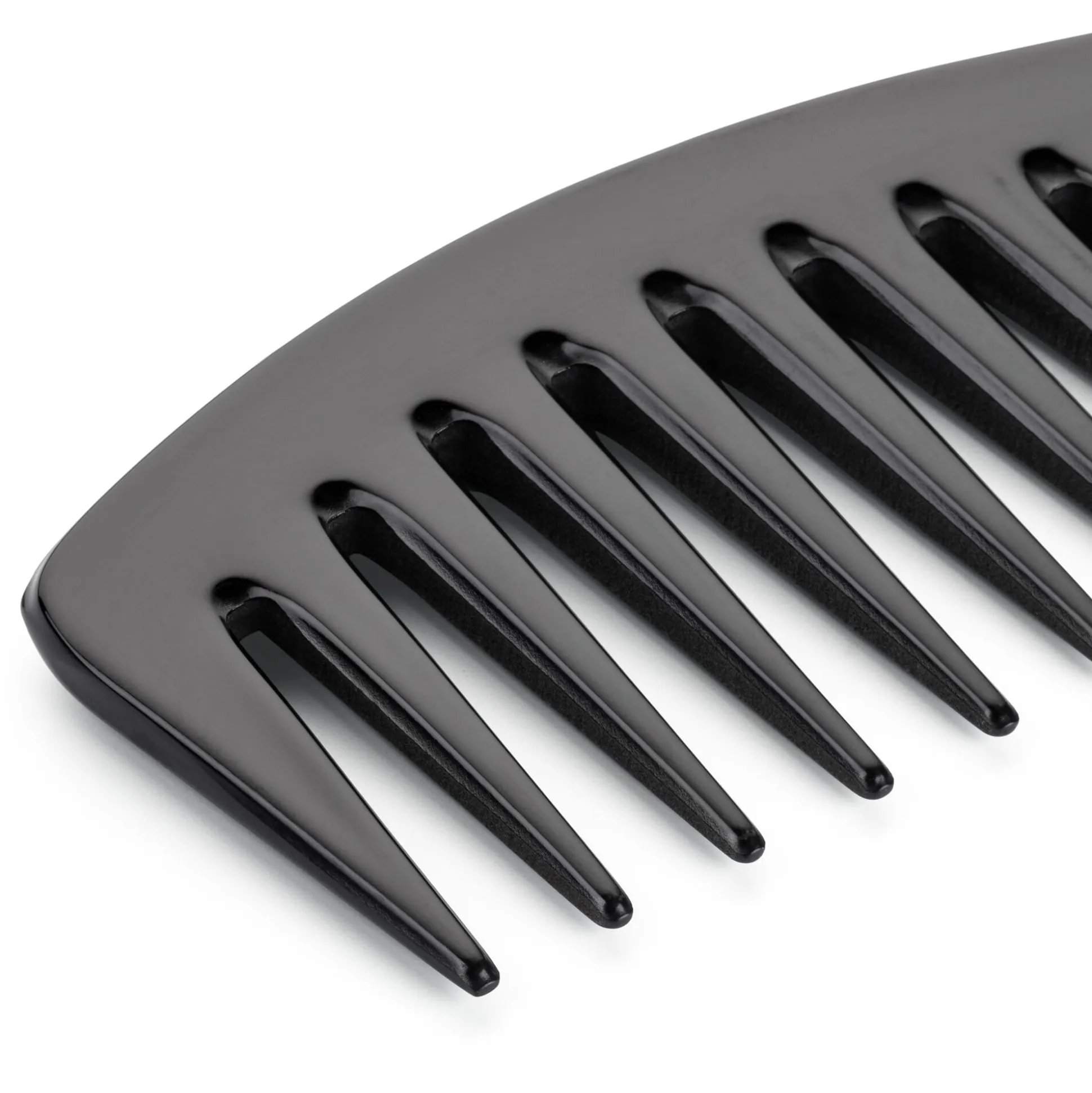 Für jedes Haar und jede Länge geeignet, bewältigt dieser Ebonitkamm auch Locken und dickes Haar. Vor allem ist er auch – bei Verwendung entsprechender Produkte – zum Styling und zur Strukturierung des Haars geeignet.