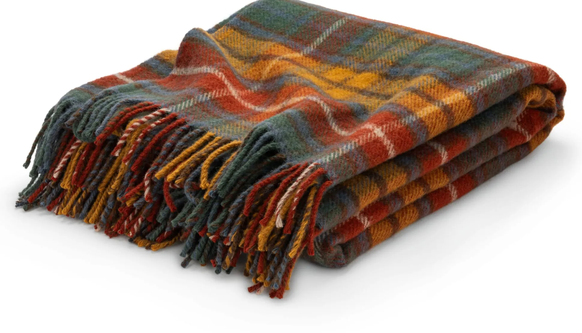Diese Tartan-Schurwolldecke webt Tweedmill in Anlehnung an den traditionellen Buchanan-Tartan. Die Ländereien des Buchanan-Clans liegen am Loch Lomond und in Stirlingshire in den Central Lowlands. Das Clan-Motto lautet: „Clarior hinc honos“ (Heller, daher die Ehre). Wie viele Tartan-Muster gibt es auch den Buchanan-Tartan in verschiedenen Varianten – dabei bleibt das Muster stets gleich, nur die Farbtöne variieren. Beim Antique (oder Ancient) zeigt der Tartan weiche, gedeckte Farben, wie sie bei alten Tartans üblich sind. Grund dafür war das bis Mitte des 19. Jahrhunderts übliche Färben mit tierischen und pflanzlichen Farbstoffen. Danach färbte man immer öfter mit chemischen Farbstoffen, die viel kräftigere Farben hervorbrachten, wie man sie in der Folge bei den Modern Tartans findet. Diese Decke wird aus robuster, neuseeländischer Schurwolle gewebt, die tierfreundlich gewonnen wurde, da Mulesing in Neuseeland nicht angewandt wird. Sie ist unempfindlich und auch etwas fester im Griff, sodass sie beherzt mit auf Balkon und Terrasse genommen werden kann.