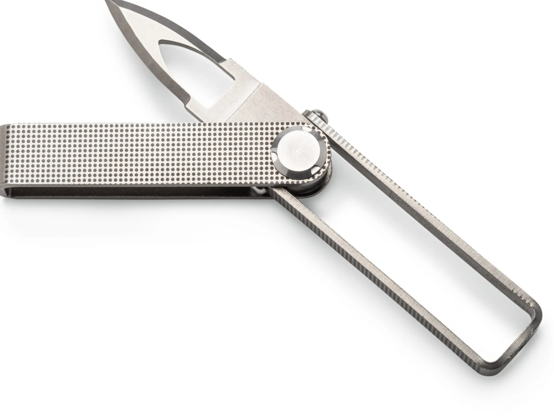 Ganz aus Edelstahl. Hergestellt in Frankreich. Breite 2 cm. Klingenlänge 3,5 cm, Heftlänge 8,5 cm. Gesamtlänge (ausgeklappt) 14,5 cm. Gewicht 90 g.
