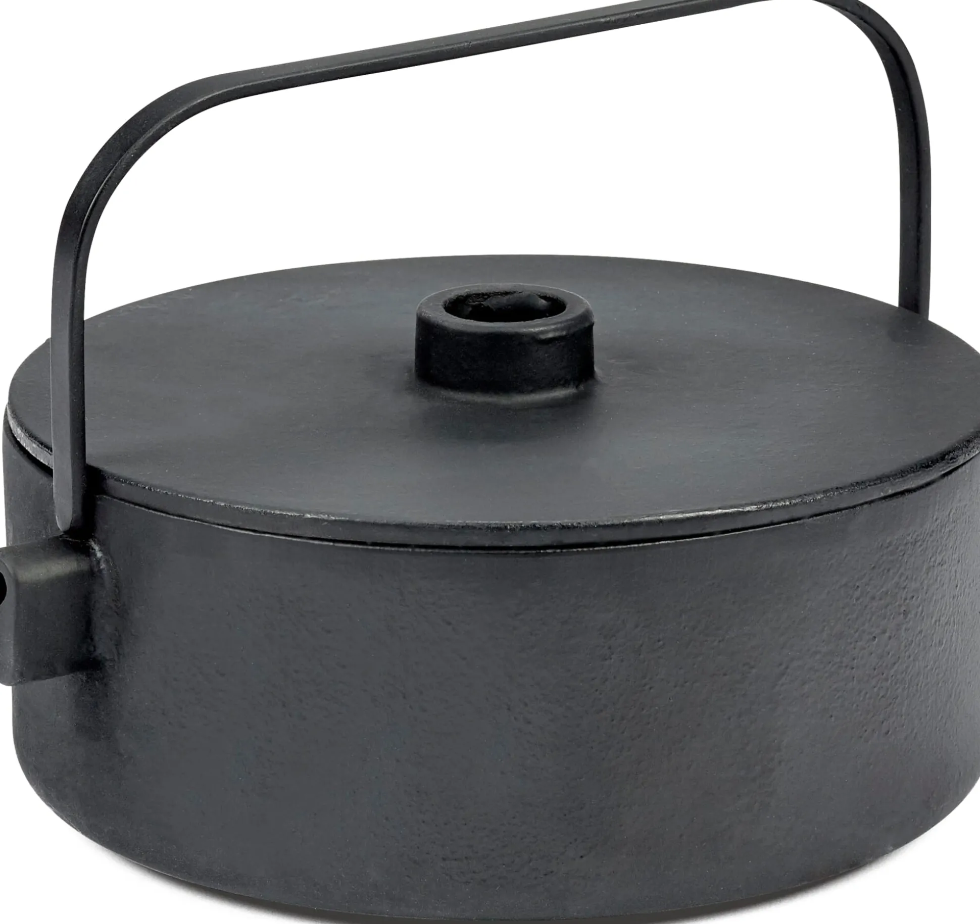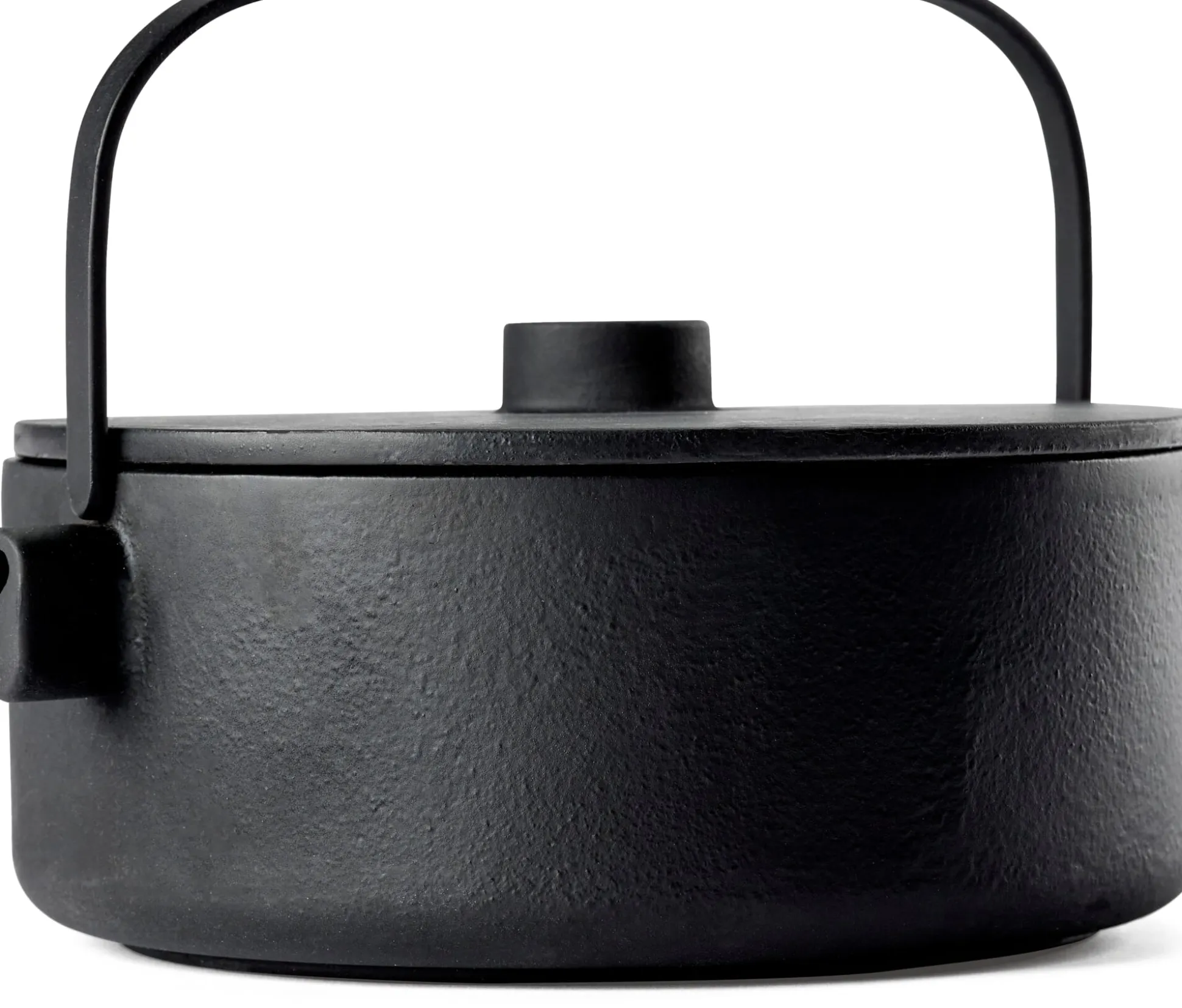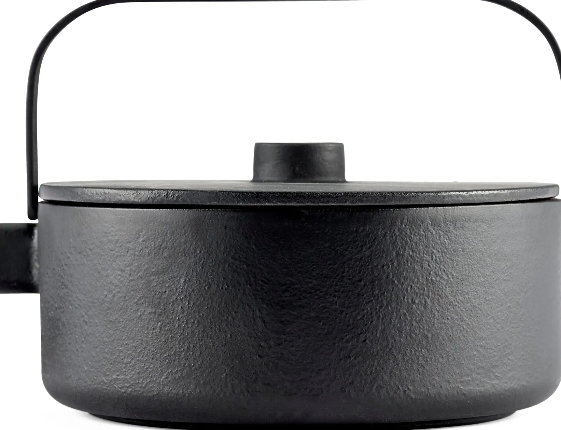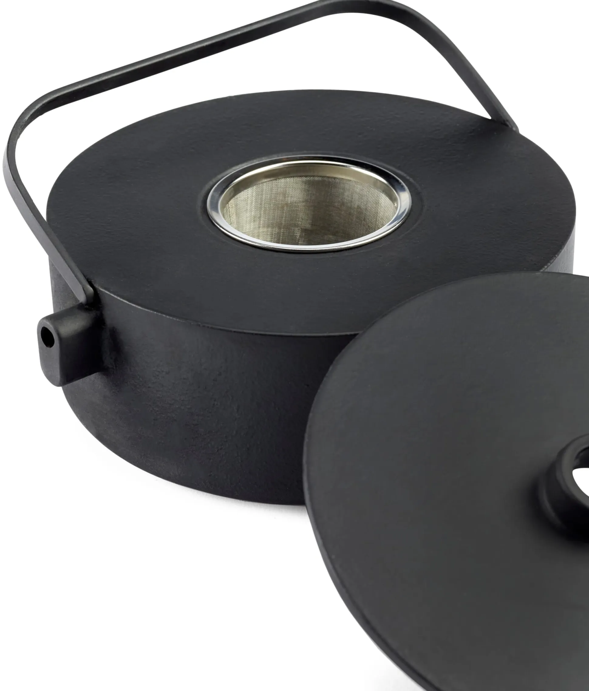 Bildschöne Teekanne – aus Gusseisen, dem perfekten und bewährten Material für diesen Inhalt und in ungewöhnlicher Formgebung. Die maximal 1,2 Liter fassende Kanne ist gut zu handhaben, gießt sicher aus und besitzt einen Siebeinsatz aus Edelstahl. Sie ist außerdem induktionsgeeignet.