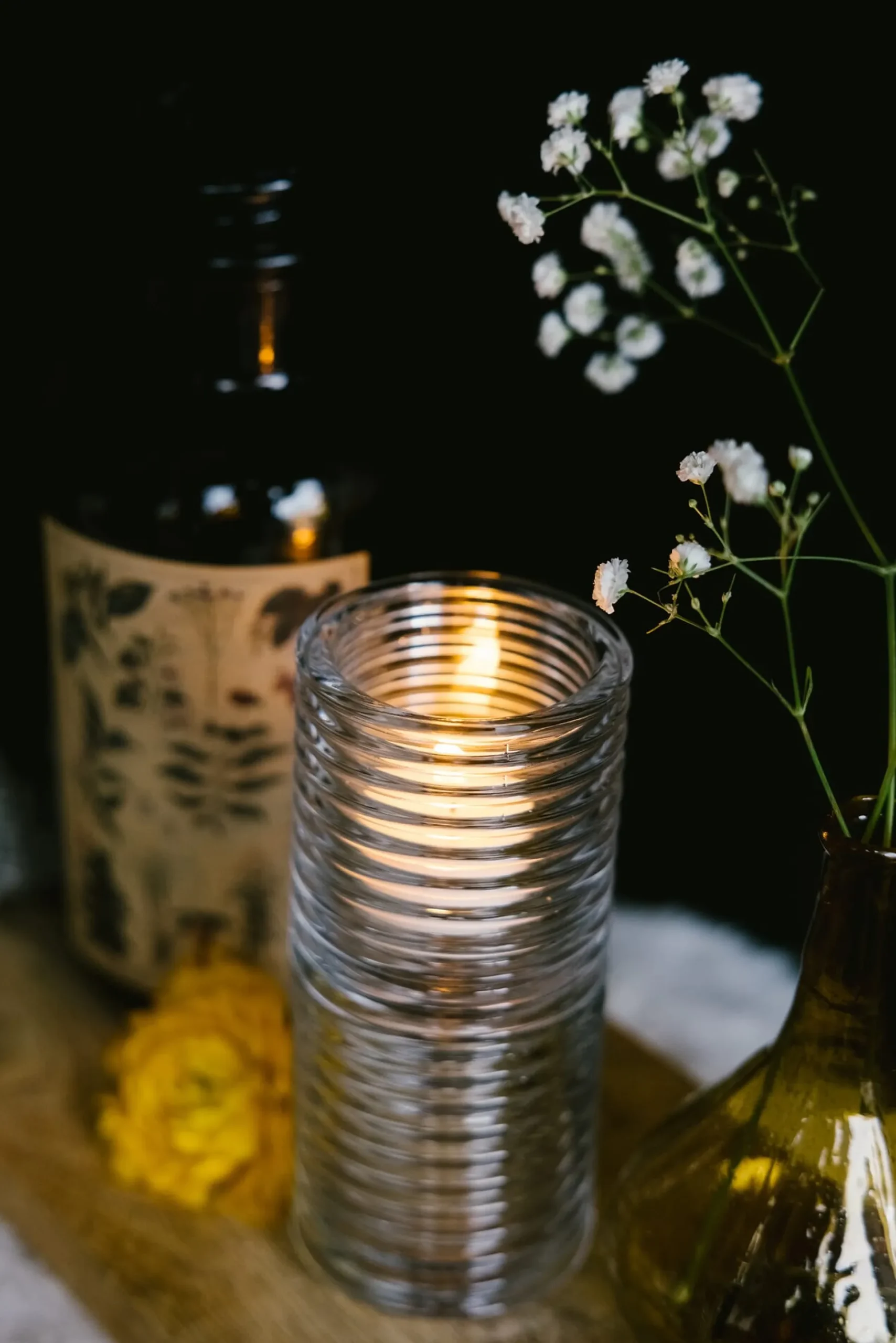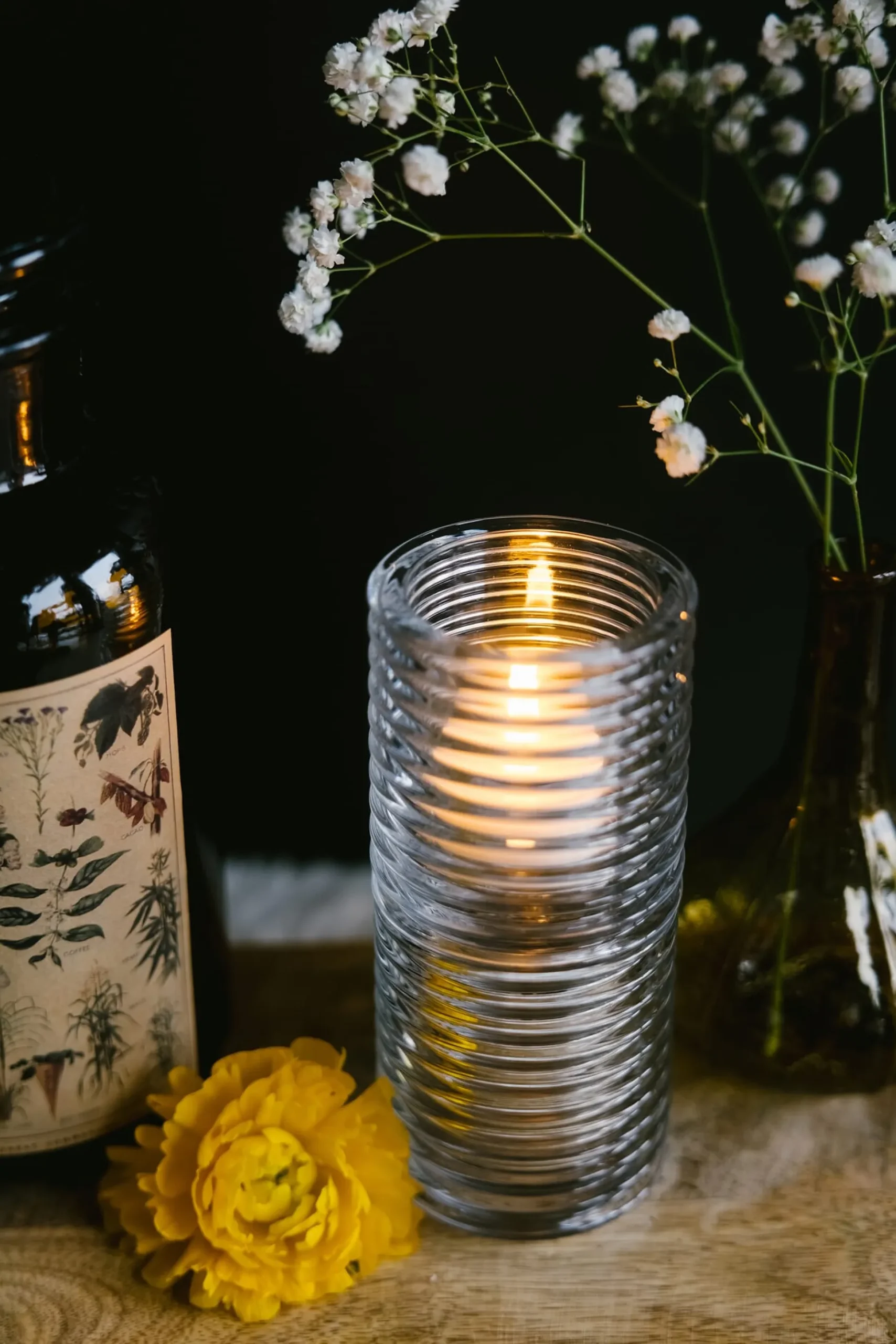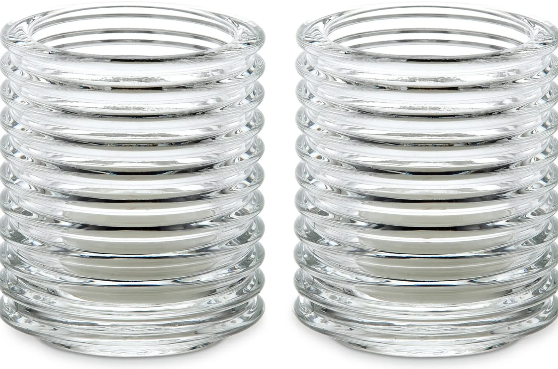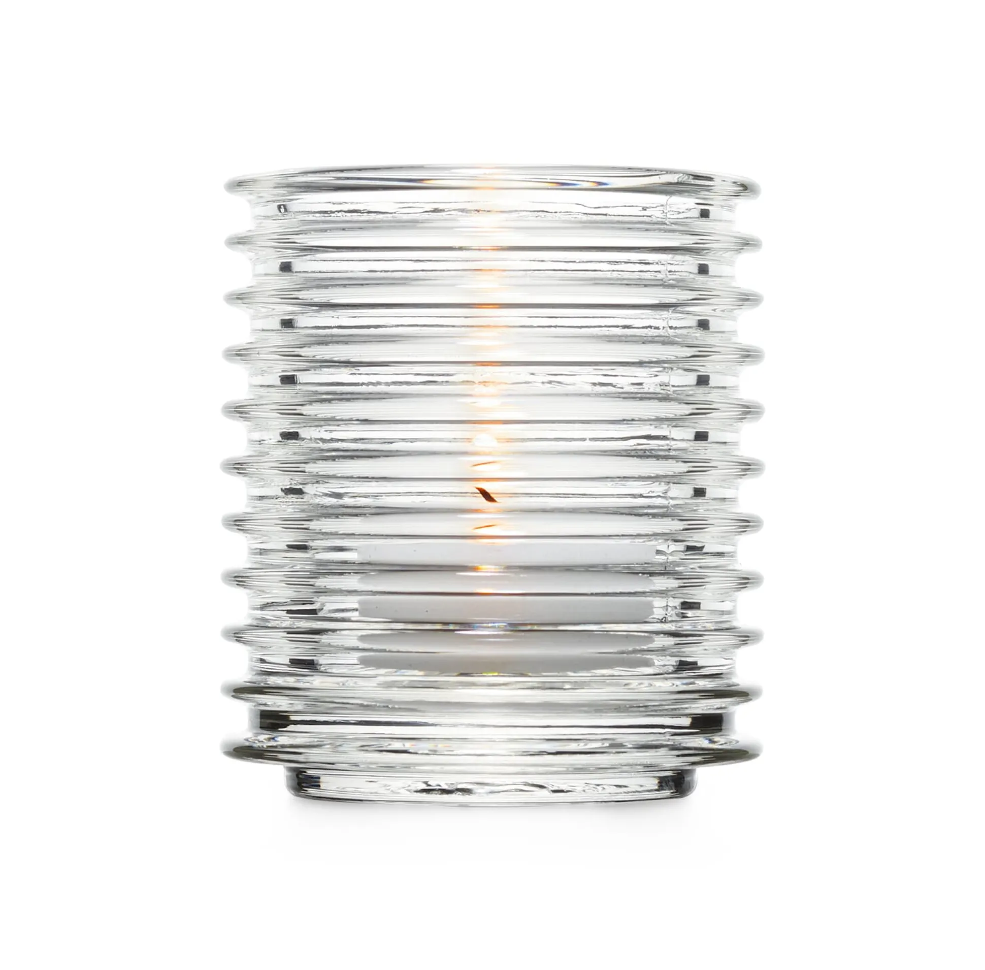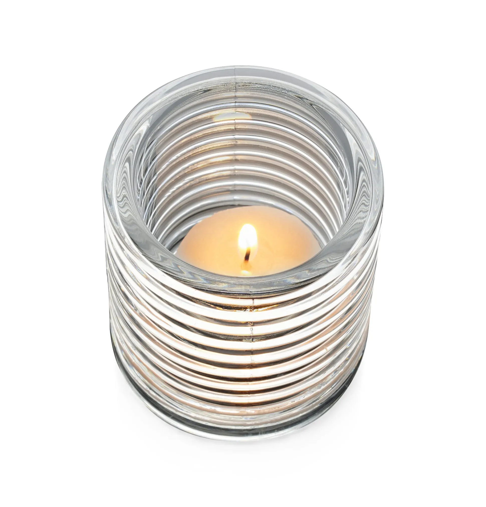 Wie ein technischer Isolationskörper: Schönes, stapelbares Windlicht aus Pressglas mit geriffeltem Glaszylinder, der einen interessanten Lichteffekt erzeugt. Lieferung ohne Kerze.