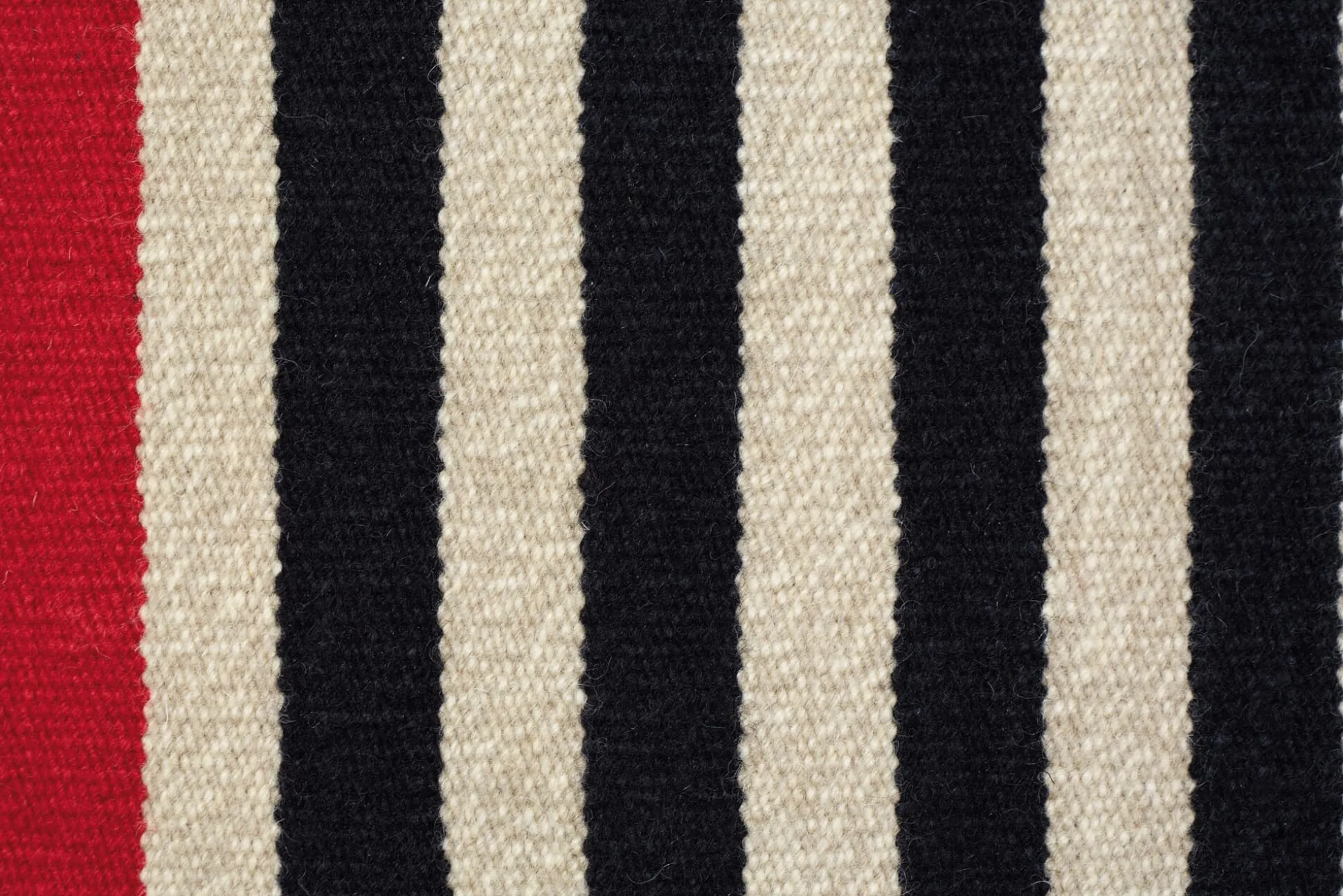 Mustergültig skandinavisch: Das klare Streifenmuster des handgewebten Teppichs fasst die Textildesignerin Lisbet Friis mit leuchtend roten Webabschlüssen ein. Beim dänischen Familienunternehmen Fabula trifft skandinavische Gestaltung auf orientalische Handwerkstechnik – durch die Kelim-Webart bildet der Schussfaden auf beiden Seiten des Teppichs das Muster, sodass dieser beidseitig verwendbar ist. Dank seiner geringen Florhöhe ist ROSEMARY vor allem auch in Durchgangsbereichen und Fluren einsetzbar. Hergestellt in Indien.