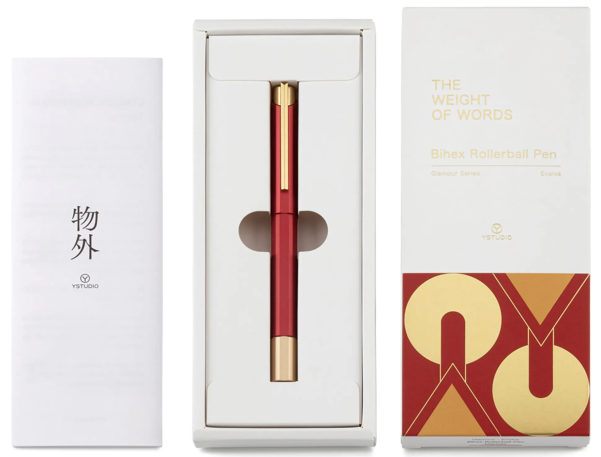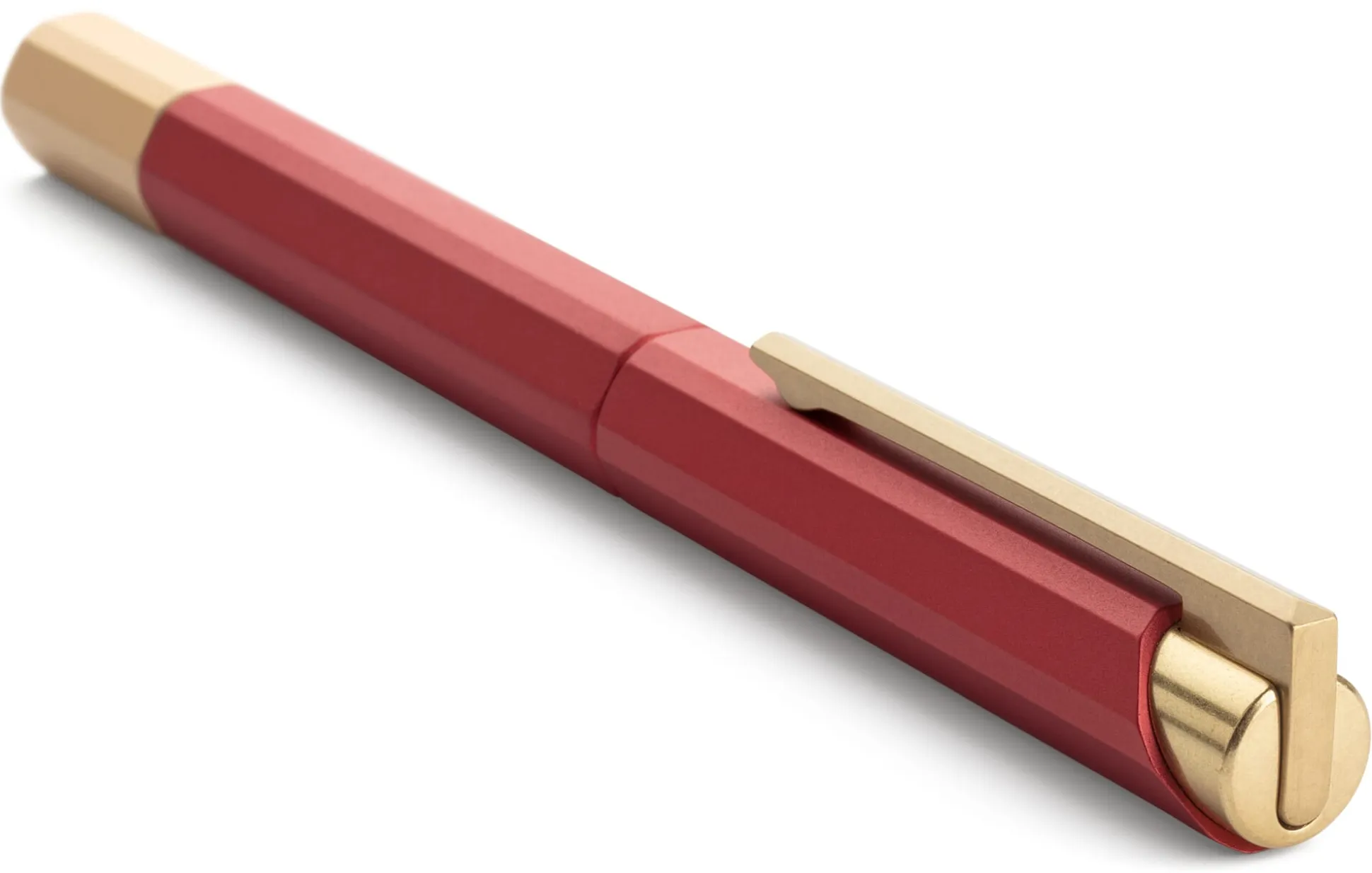 Außergewöhnlich in Form und Farbgebung ist dieser Tintenroller des taiwanischen Herstellers YStudio. Gestalterische und auch haptische Besonderheit des im Querschnitt hexagonalen Aluminiumgehäuses sind die gefasten Kanten. Dadurch liegt der an sich bereits gut ausbalancierte Stift noch angenehmer in der Hand. Gleichsam elegant wie auffallend sind die Farbkombinationen: Der in kräftigem Grün, Blau oder Rot eloxierte Korpus wird von einem glanzpolierten Messing-Clip und einem kontrastfarbenen Endstück in Rosé, Orange oder Messingfarbe eingefasst.