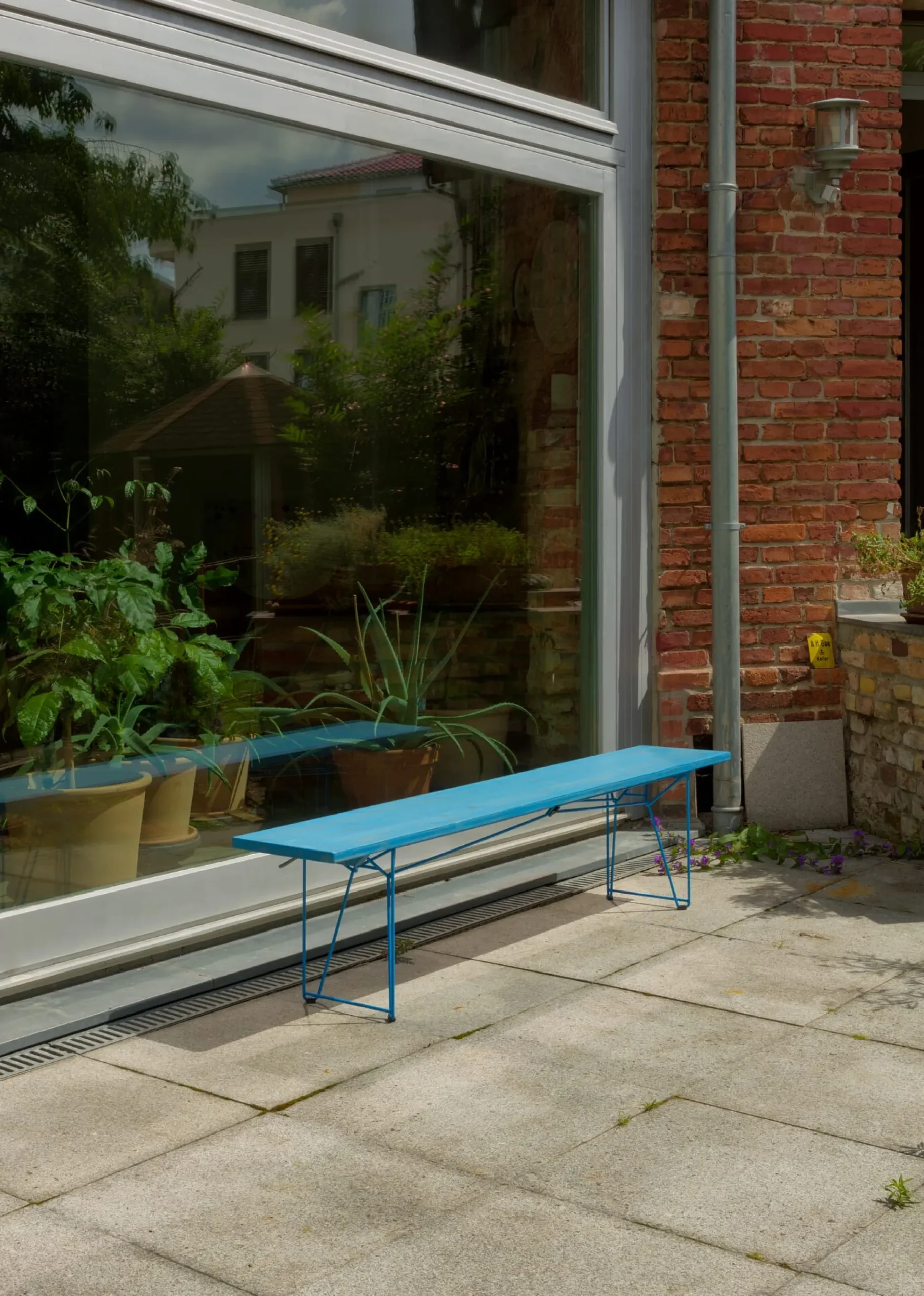 Vielseitiges Möbelstück, schöne Bank und schlanker Tisch: BTB ist alles in einem, denn im Handumdrehen verwandeln sich seine Bauteile von einer Bank in einen Tisch. Wie’s funktioniert? Das mit einem Handgriff unter die Platte (nicht im Lieferumfang enthalten) klickbare Gestell lässt sich mit seinem kurzen Schenkel als Gestell unter einer Bank in üblicher Sitzhöhe und seinem langen Schenkel als Gestell für einen schlanken Tisch einsetzen. So erfüllt eine Bank aus den BTB-Elementen elegant in Fluren ihren Dienst als Sitzgelegenheit und Ablage. Eine Gruppe von zwei Bänken und einem Tisch funktioniert als Essplatz auf dem Balkon. Und durch die Stapelbarkeit, Robustheit und Wetterfestigkeit, sowohl der Platten als auch der Gestelle, ist BTB probate Lösung überall dort, wo viele Bänke und Tische platziert werden müssen – platzsparend und leicht zu handhaben. Falls eine breitere Tischplatte gewünscht ist, sind die Platten an ihren Längsseiten mithilfe von Spanngummis miteinander koppelbar. BTB ist also viel mehr als eine hochwertige Biergartenmöblierung.