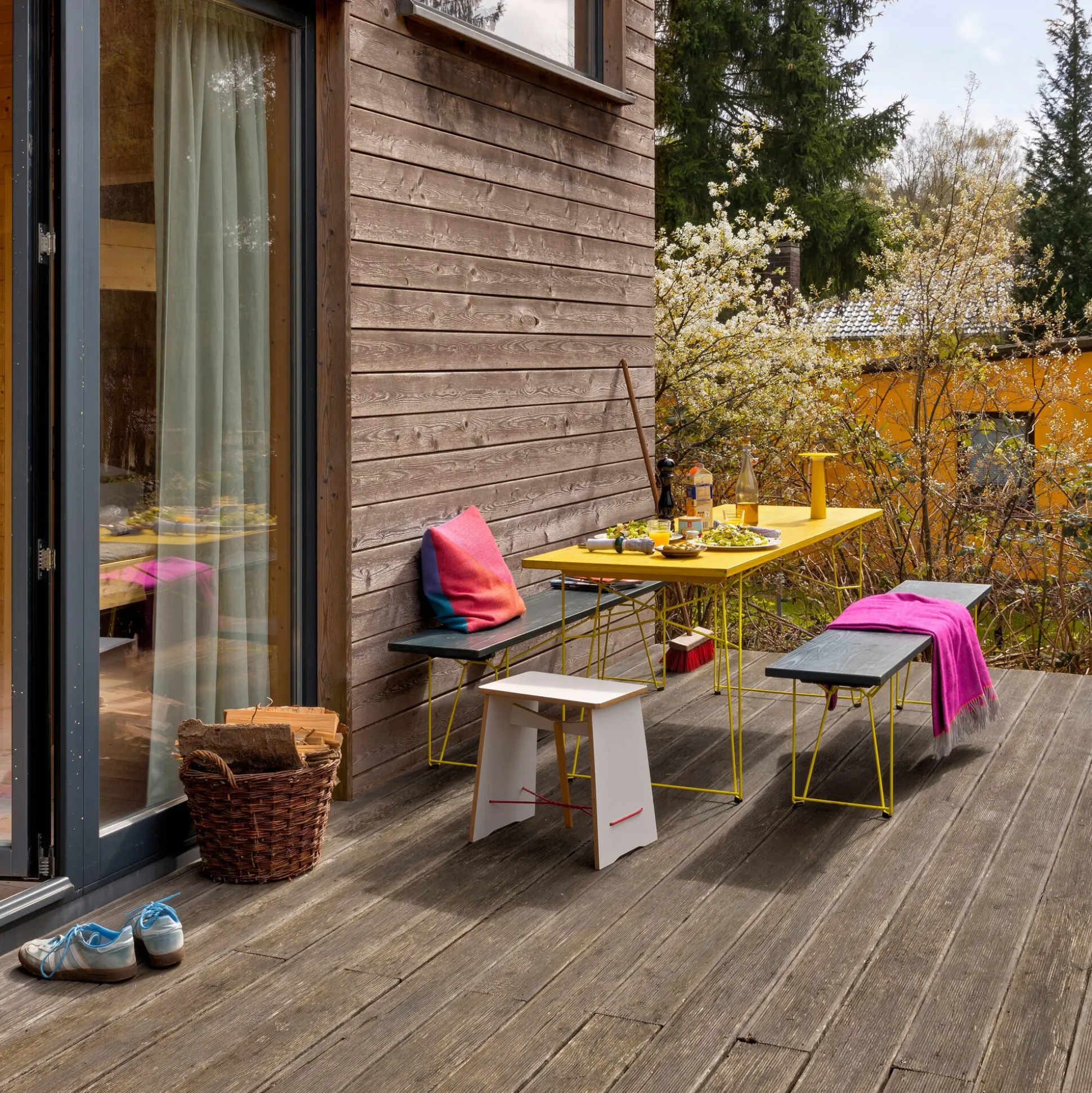 Vielseitiges Möbelstück, schöne Bank und schlanker Tisch: BTB ist alles in einem, denn im Handumdrehen verwandeln sich seine Bauteile von einer Bank in einen Tisch. Wie’s funktioniert? Das mit einem Handgriff unter die Platte klickbare Gestell (nicht im Lieferumfang enthalten) lässt sich mit seinem kurzen Schenkel als Gestell unter einer Bank in üblicher Sitzhöhe und seinem langen Schenkel als Gestell für einen schlanken Tisch einsetzen. So erfüllt eine Bank aus den BTB-Elementen elegant in Fluren ihren Dienst als Sitzgelegenheit und Ablage. Eine Gruppe von zwei Bänken und einem Tisch funktioniert als Essplatz auf dem Balkon. Und durch die Stapelbarkeit, Robustheit und Wetterfestigkeit, sowohl der Platten als auch der Gestelle, ist BTB probate Lösung überall dort, wo viele Bänke und Tische platziert werden müssen – platzsparend und leicht zu handhaben. Falls eine breitere Tischplatte gewünscht ist, sind die Platten an ihren Längsseiten mithilfe von Spanngummis miteinander koppelbar. BTB ist also viel mehr als eine hochwertige Biergartenmöblierung.