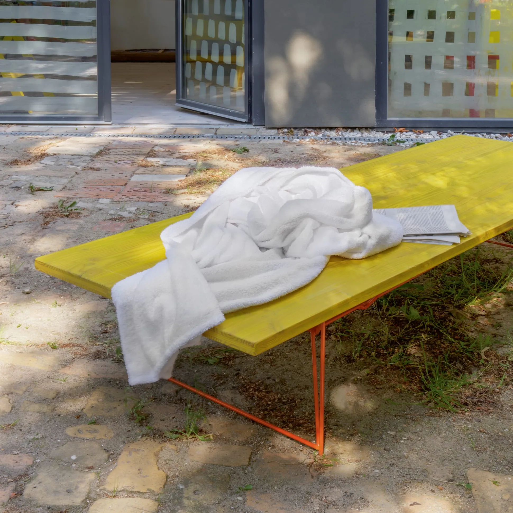 Bildschöner Tisch im schlanken langen Format, wohlproportionierte Liege, für den Innenraum aber auch im Freien zu benutzen: Tisch und Liege LTL ist je nach Bedarf beides und wechselt im Handumdrehen von einem ins andere. Tisch und Bank BTB aus unserem Sortiment funktionieren nach dem gleichen Prinzip. Mit der Koffermatratze FLEX PLUS aus unserem Sortiment liefern wir die Ergänzung für die Nutzung als Liege. Das mit einem Handgriff unter die Platte (nicht im Lieferumfang enthalten) klickbare Gestell lässt sich mit seinem kurzen Schenkel als Gestell unter der Liege und seinem langen Schenkel als Gestell für einen hohen Tisch einsetzen. Ideal ist diese Wandelbarkeit in kleinen Räumen mit verschiedener Nutzung, in Apartments mit kleiner Grundfläche oder Arbeits- und Atelierräumen – überall dort, wo maximale Variabilität eines solchen Möbels gewünscht ist. Auch ohne den Bedarf nach Verwandelbarkeit lässt sich der Tisch oder die Liege als fixes Möbel benutzen. Als Tisch für Gastronomie- oder Schulungsräume findet LTL ebenso seinen optimalen Einsatz, denn Platte und Gestell lassen sich einfach trennen und bieten die Möglichkeit der raumökonomischen Unterbringung durch die Stapelbarkeit von Gestellen und Platten.