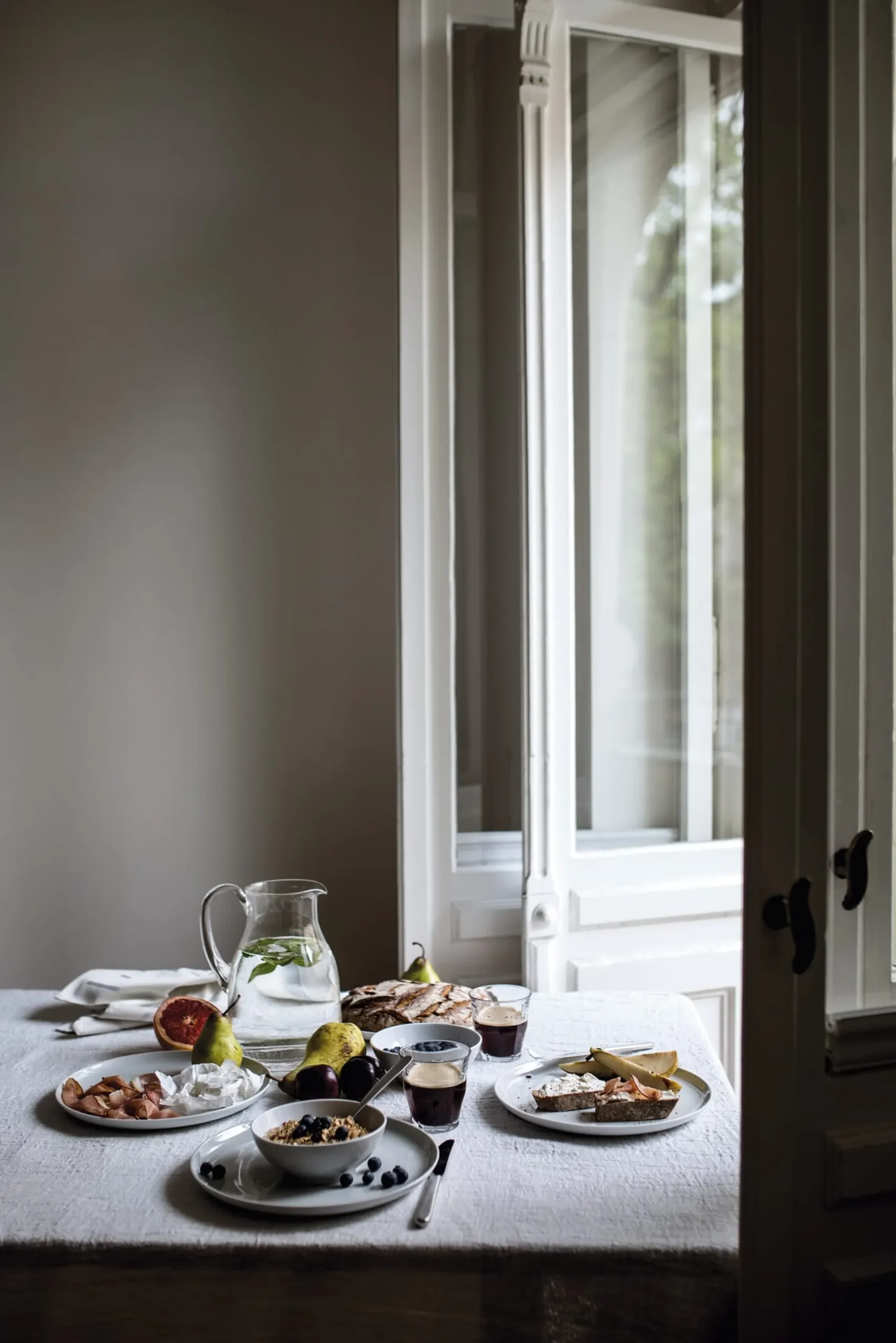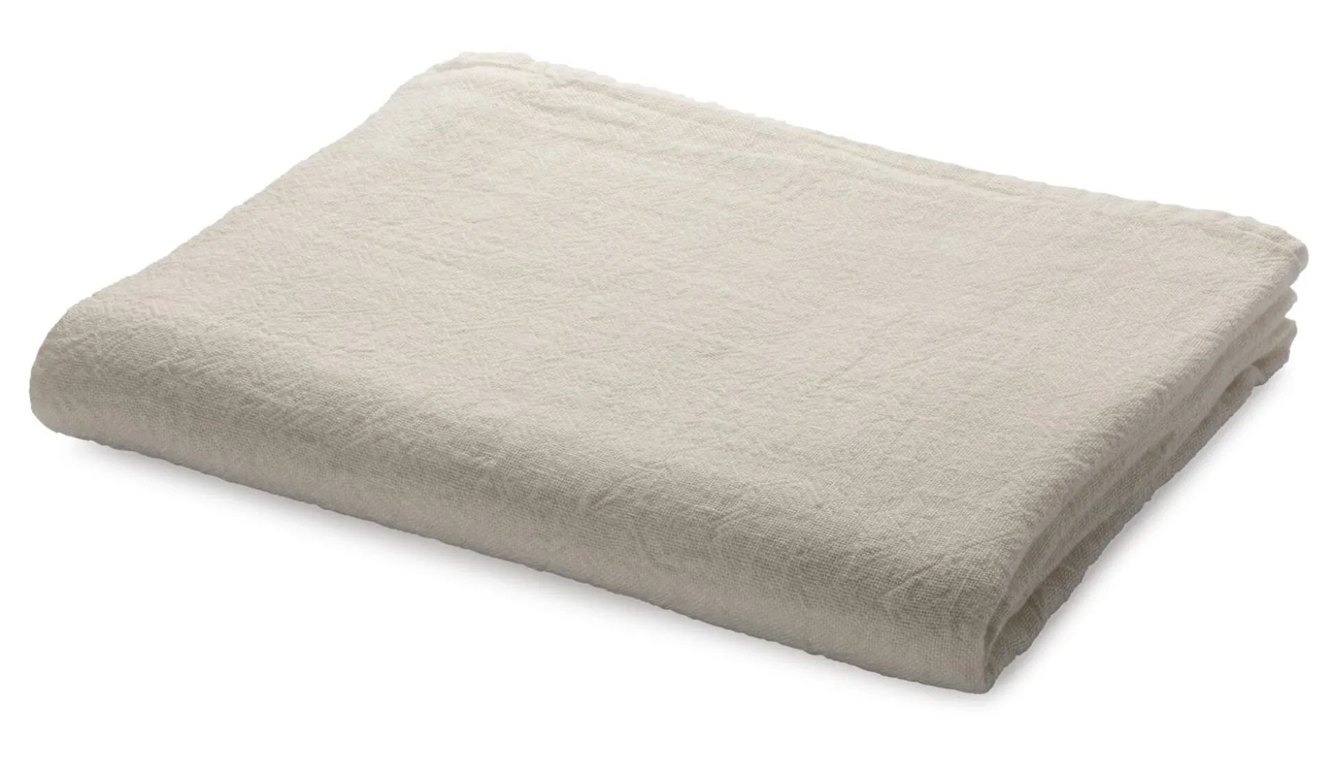 Anders als frisch gestärkte und glattgebügelte Tischwäsche kommt diese aus gewaschenem Leinen mit einer besonders lebendigen und eben nicht der perfekt glatten Oberfläche daher. Verwendet wird außerdem – für Tischdecken eher ungewöhnlich – ein etwas gröberes Garn, das locker in klassischer Leinwandbindung verwebt wird. Dadurch entsteht ein halbtransparentes Gewebe, das durch ein erstes Waschen nach dem Konfektionieren voluminöser wirkt und bereits einen weichen Griff hat, also nichts mehr von der für Leinengewebe typischen anfänglichen Steifigkeit zeigt.