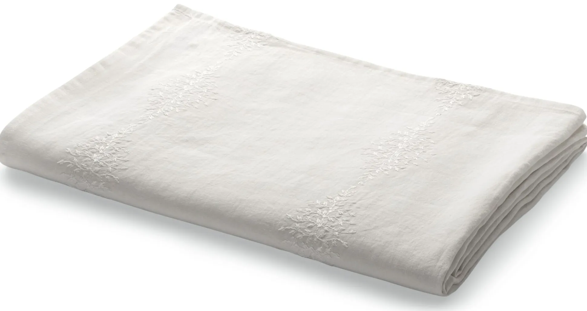 Für das Leinengewebe dieser Tischdecke verarbeitet Charvet ein etwas kräftigeres Leinengarn der Stärke Nm 26 – weißgebleicht oder naturbelassen, also ungefärbt und ungebleicht. Dadurch hat es einen kernig-weichen Griff und ist sehr strapazierbar. Mit den aufgestickten weißen Blätterranken – für uns wird dafür eigens Baumwolle verwendet – eignet sich die Tischdecke sowohl für festliche Anlässe wie für den alltäglichen Gebrauch. Einen passenden Tischläufer sowie Servietten gleicher Art finden Sie ebenfalls bei uns im Sortiment.