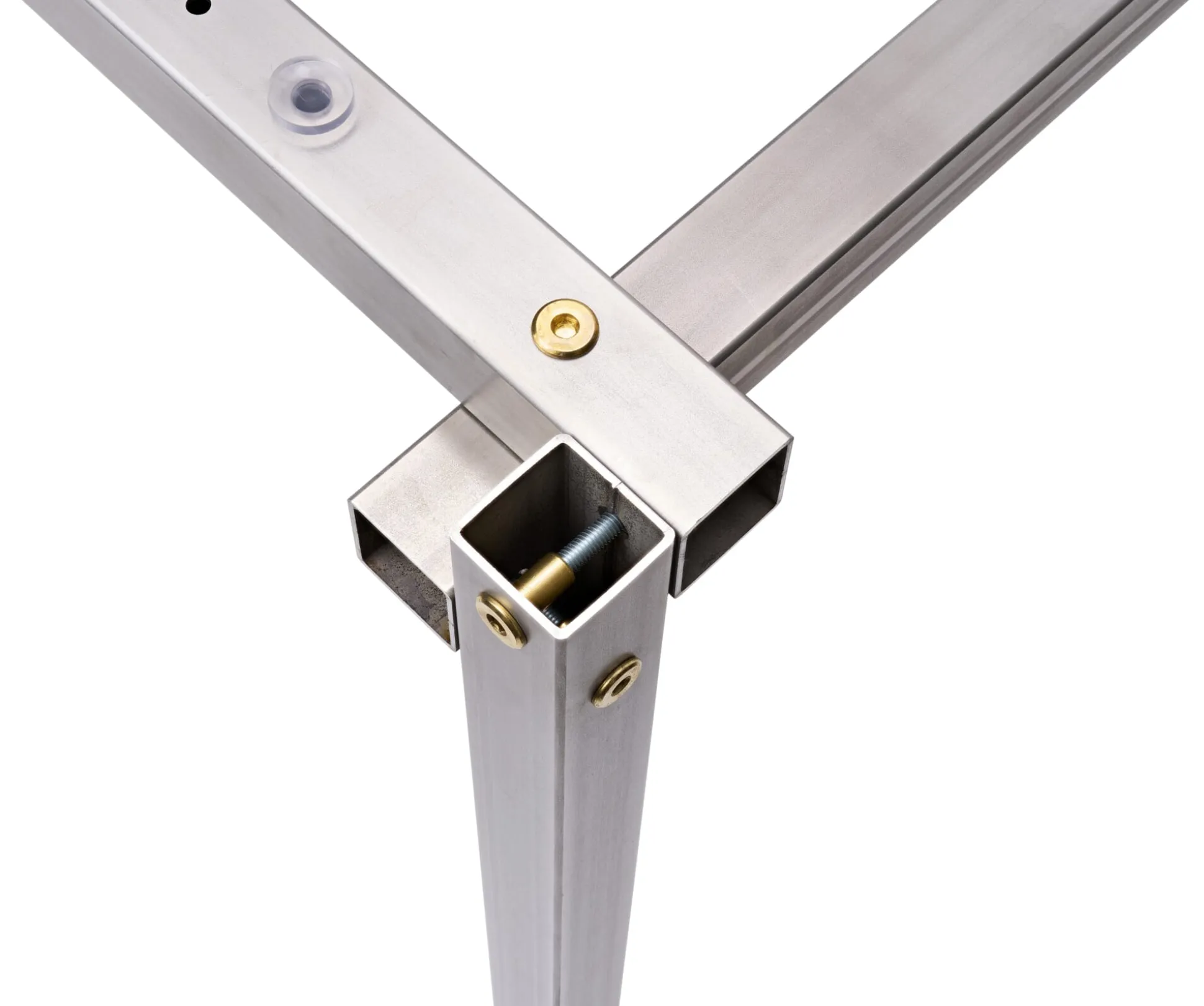 - Stabiles Tischgestell aus acht stählernen Quadratrohren