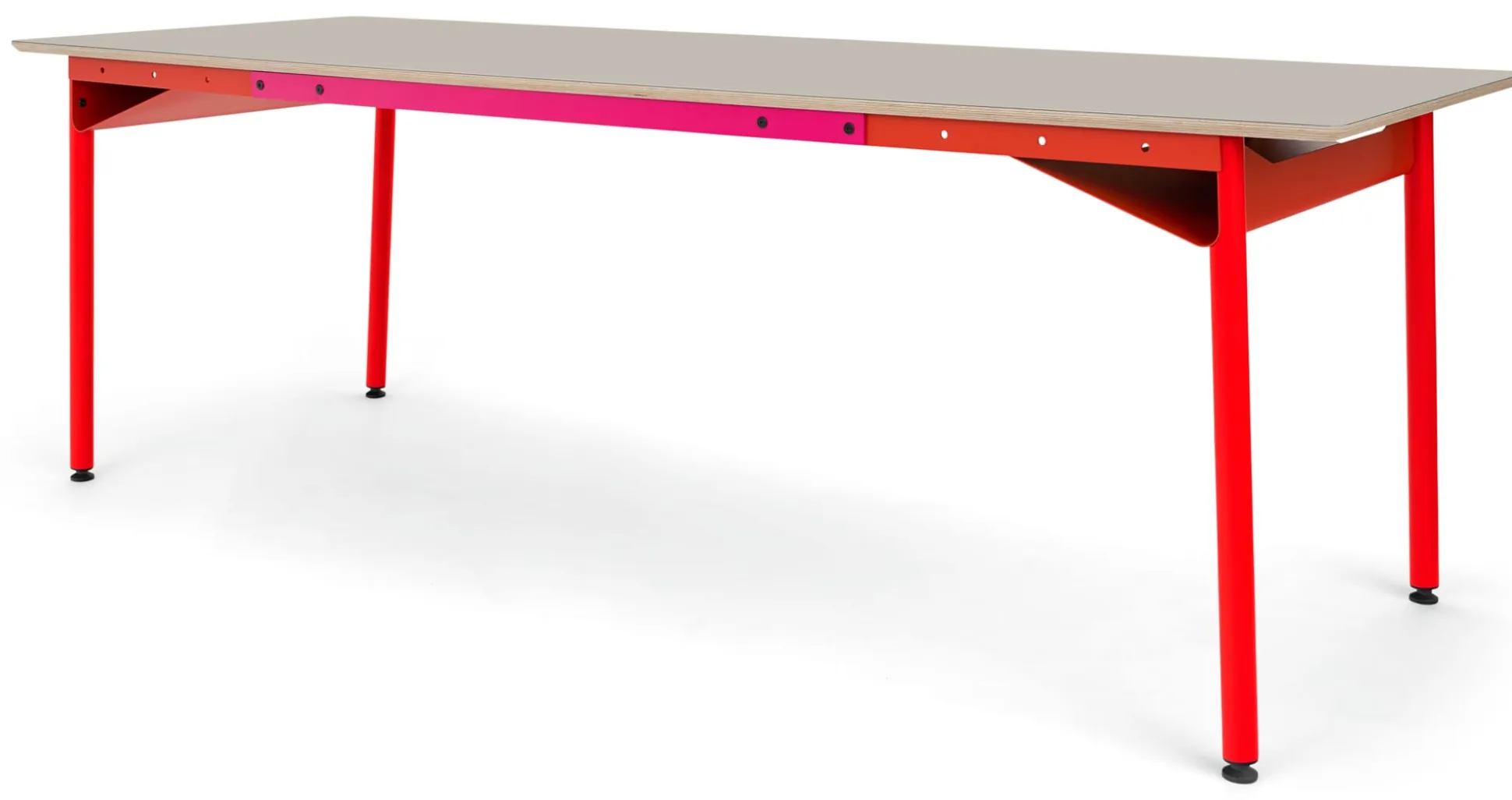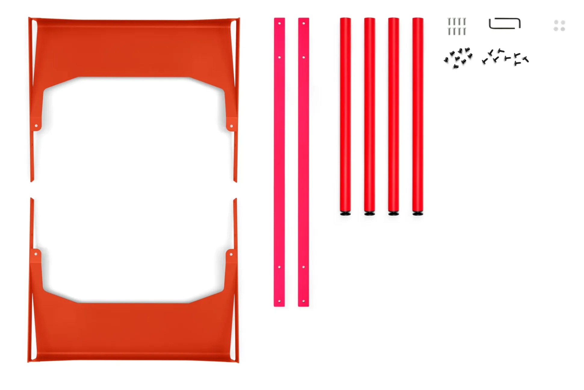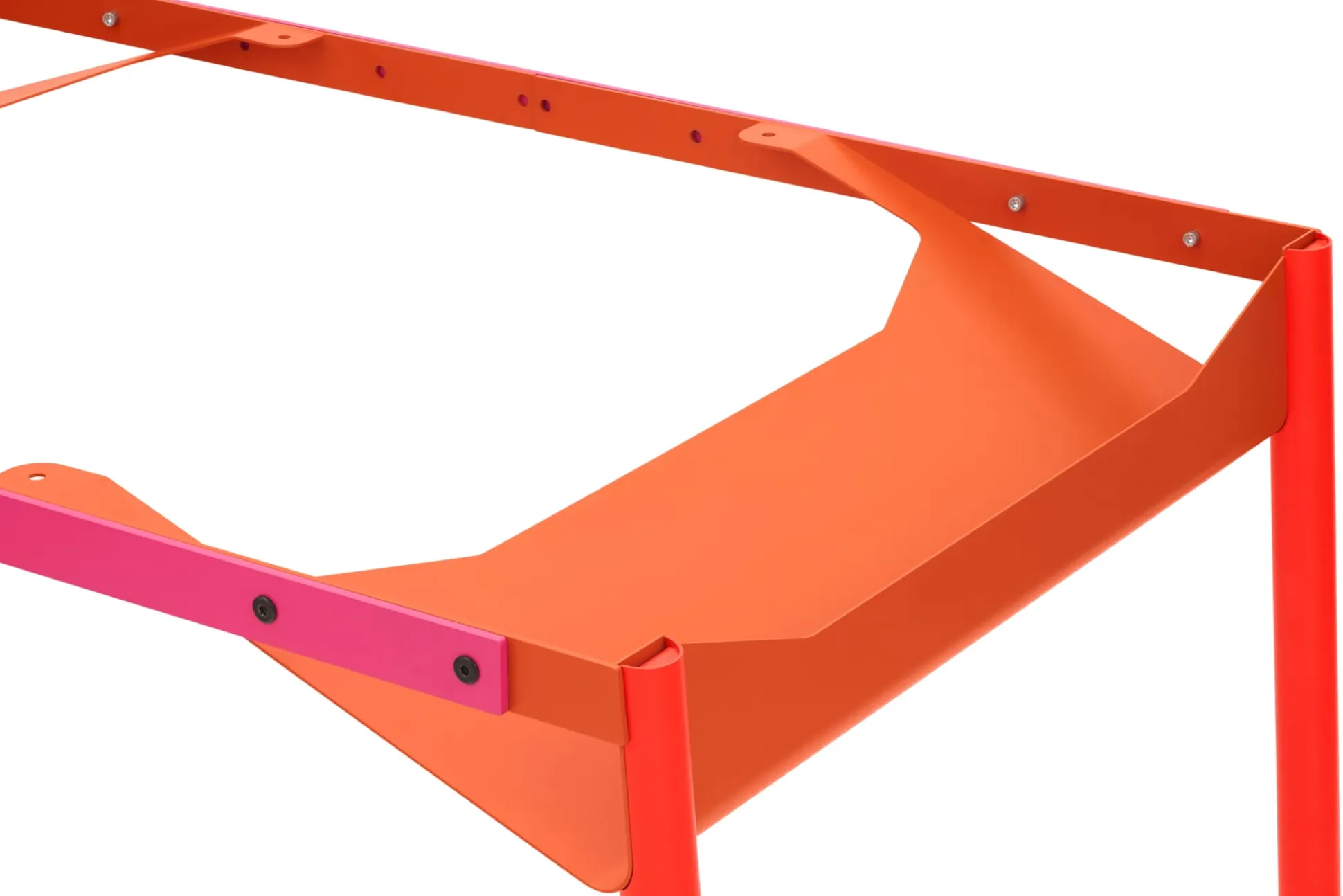 Material: Stahl, pulverbeschichtet (Leuchtrot RAL 3024, Rotorange RAL 2001 und Telemagenta RAL 4010); Kunststoff