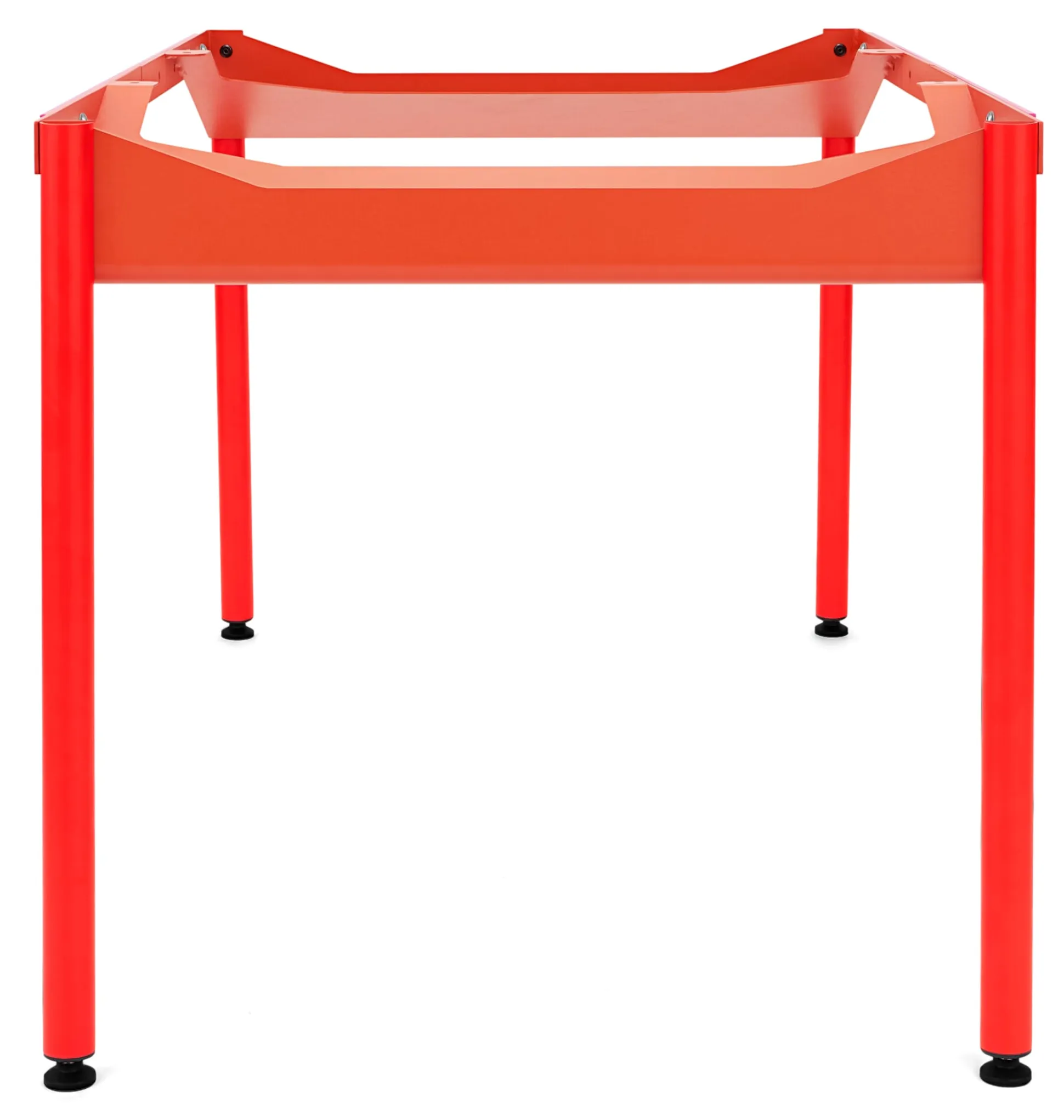 Wie aus dem Lehrbuch der Konstruktion: Diagonale heißt das Zauberwort! Beim Tischgestell ZEHDENICKER sorgt sie – elegant ausgeformt mit den an den Kopfseiten platzierten wannenartigen Bauteilen – für Stabilität und Verwindungssteifigkeit. Kein Wackeln, kein Schaukeln. Und das unabhängig davon, ob das Gestell im Architekturbüro oder am Essplatz eingesetzt wird. Aber auch sonst hat der formschöne und trotz seiner Robustheit und Stabilität fast filigran wirkende ZEHDENICKER allerhand zu bieten: Die stählernen Zargen des Tischgestells sind mit einem Lochraster versehen und erlauben es, das Gestell zwischen einer Breite von 135 bis 210 cm in festen Abständen zu variieren. Die beiden Wannen an den Köpfen des Tischs sind als Ablage für beispielsweise Servietten am Esstisch, Zeitungen oder auch die Mehrfachsteckdose am Arbeitsplatz zu nutzen. Zur Ausstattung gehören nivellierbare Stellfüße an den Tischbeinen. Alle Bauteile werden getrennt geliefert und sind mit wenigen Schrauben im Handumdrehen montiert.