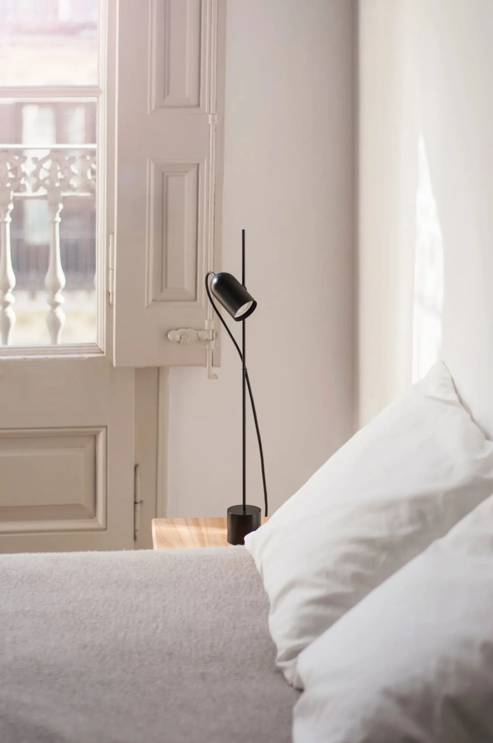 Der Name dieser Leuchten-Serie ist eine Anlehnung an ihre ursprüngliche Bestimmung: Fa ist der spanische Begriff für die Musiknote F – die filigranen Leuchten wurden zum Ausleuchten von Kunstwerken aus der Malerei im Rahmen einer Ausstellung im Opernhaus von Barcelona entwickelt. Und den Bezug zur Musik sieht man auch: Der feine Stab aus Stahl erinnert im Zusammenspiel mit dem über einen Magneten an ihm befestigten und verschiebbaren Strahler an eine Musiknote. Die massive Basis sorgt für die nötige Standfestigkeit, das 2,40 m lange Kabel für Bewegungsfreiheit – des Strahlers am Stab und der kleinen Leuchte auf dem Tisch oder im Regal. Die Leuchte ist dimmbar.