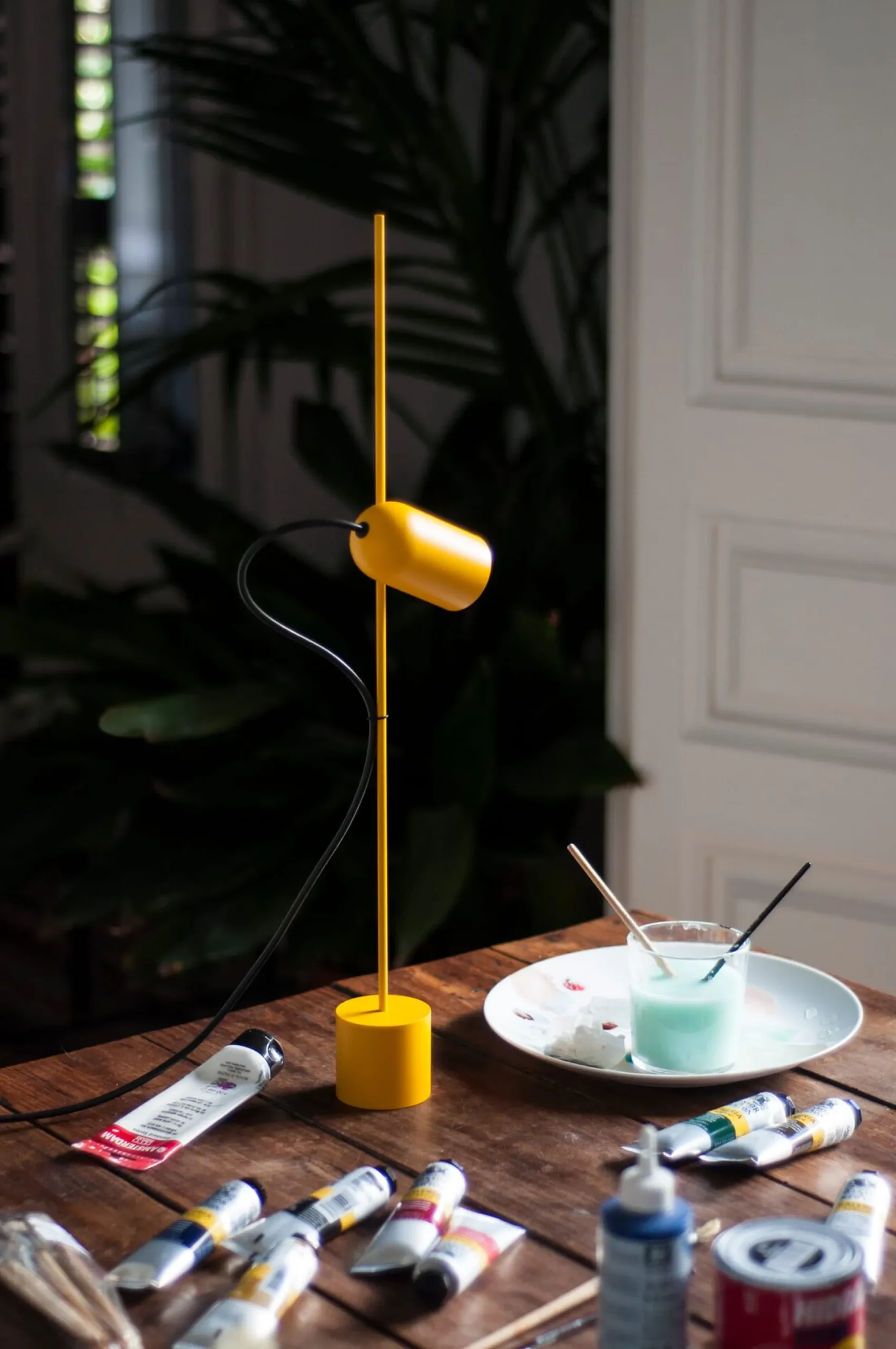 Der Name dieser Leuchten-Serie ist eine Anlehnung an ihre ursprüngliche Bestimmung: Fa ist der spanische Begriff für die Musiknote F – die filigranen Leuchten wurden zum Ausleuchten von Kunstwerken aus der Malerei im Rahmen einer Ausstellung im Opernhaus von Barcelona entwickelt. Und den Bezug zur Musik sieht man auch: Der feine Stab aus Stahl erinnert im Zusammenspiel mit dem über einen Magneten an ihm befestigten und verschiebbaren Strahler an eine Musiknote. Die massive Basis sorgt für die nötige Standfestigkeit, das 2,40 m lange Kabel für Bewegungsfreiheit – des Strahlers am Stab und der kleinen Leuchte auf dem Tisch oder im Regal. Die Leuchte ist dimmbar.