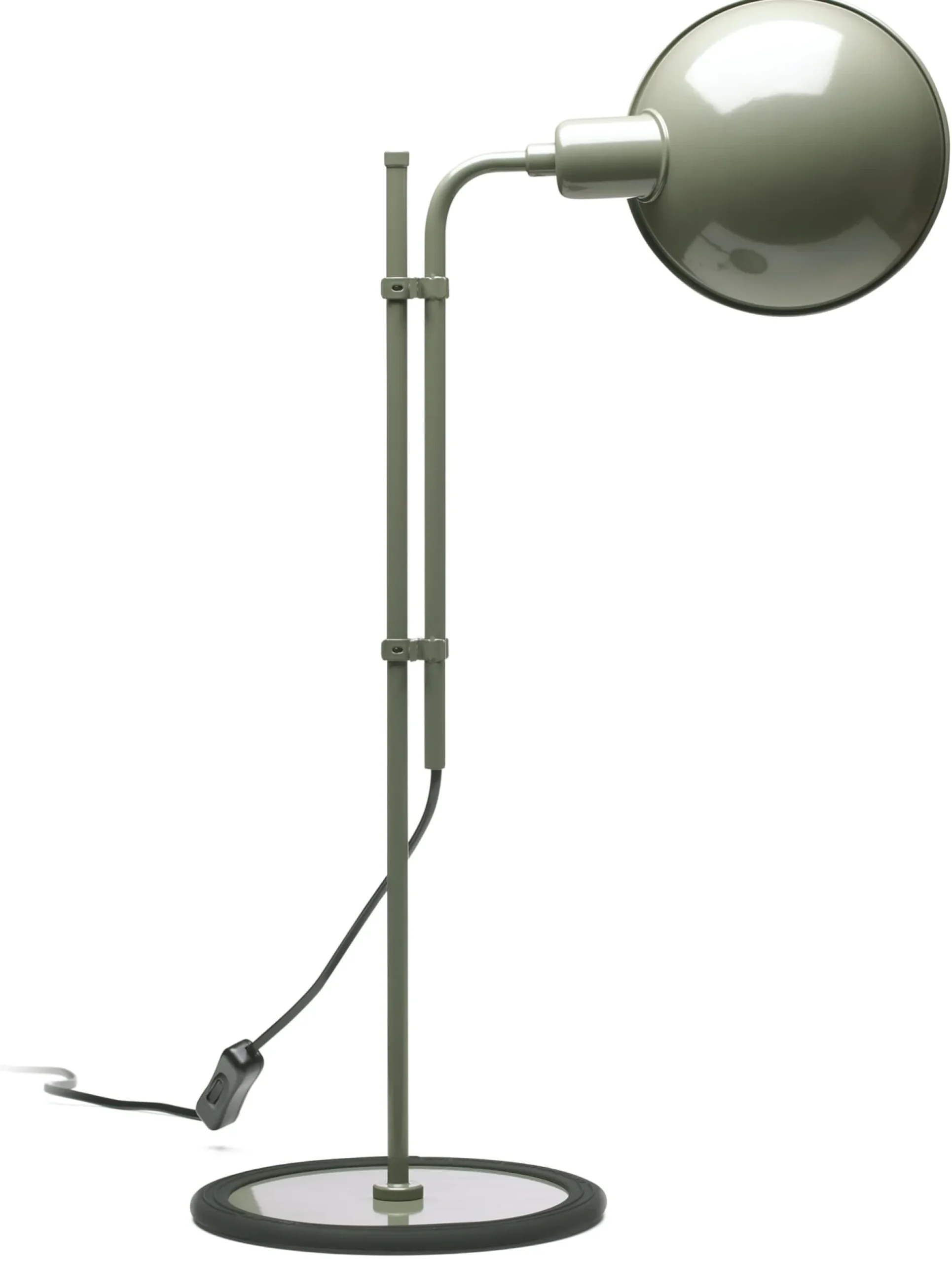 Tischleuchte in klassischer industrieller Form. Zum Einsatz am Schreib- und Arbeitsplatz, höhenverstellbar und mit seitlich drehbarem Schirm zur Abblendung. Kabel: L 165 cm, Eurostecker. Fassung: E14. Leuchtmittel im Lieferumfang nicht enthalten. Leistungsaufnahme: max. 42 W.