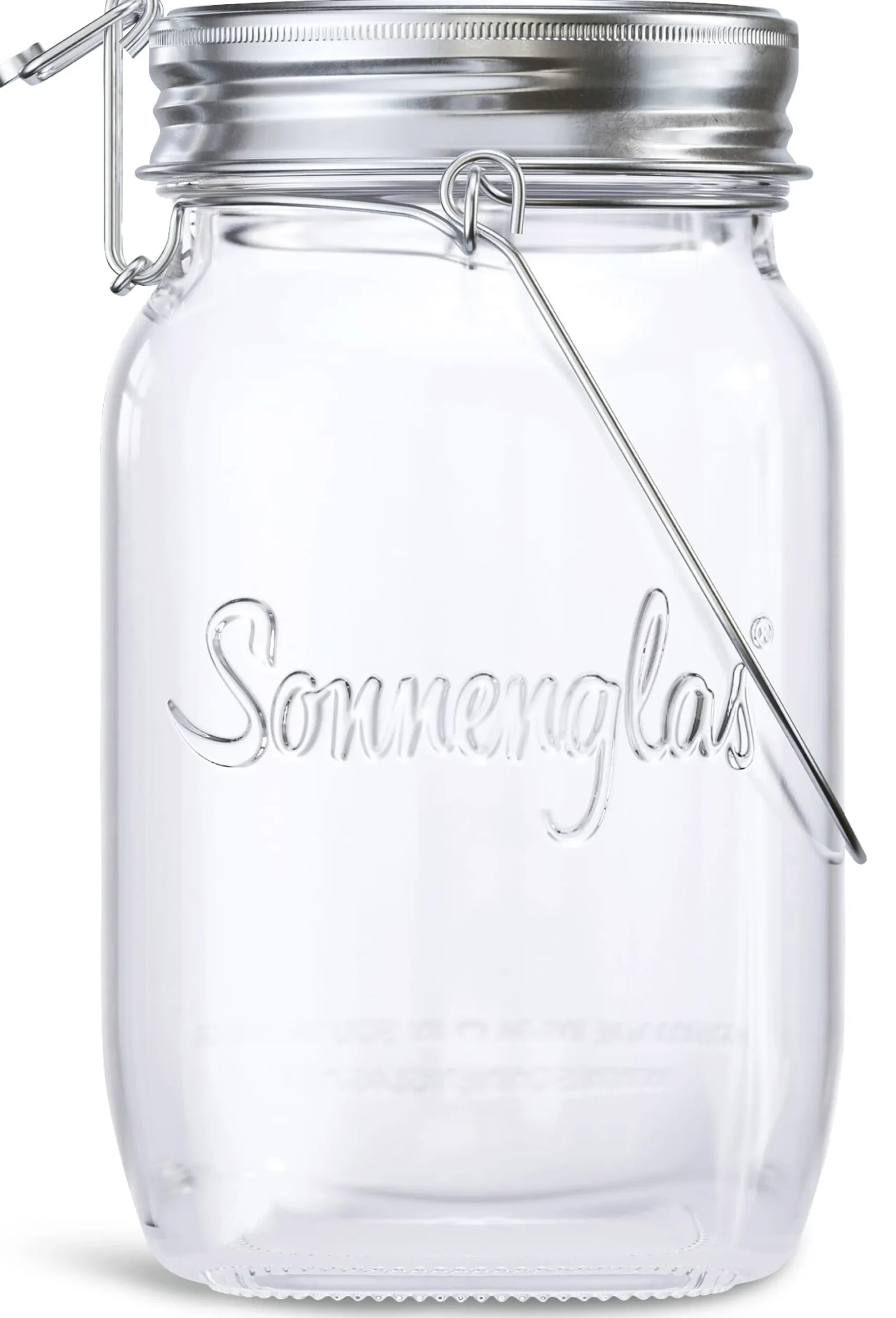 Der Glascontainer unter der Leuchteneinheit sorgt für die Distanz zur beleuchteten Fläche und erzeugt so eine kleine Lichtinsel, die sogar in unmittelbarer Umgebung als Leselicht dienen kann. Ein kleiner Bügel am Schraubdeckel dient als Magnetschalter. Ist dieser aktiviert, schaltet sich die Leuchte ab einer bestimmten Beleuchtungsstärke automatisch an und aus, beispielsweise bei Sonnenauf- und -untergang. Das integrierte Sonnenmodul ist auch ohne Glasbehälter voll funktionsfähig und als mobile Leuchte in der Hosentasche zu tragen. Über den Bedienknopf kann es an- und ausgeschaltet werden, ebenso verfügt es über eine Notlichtfunktion, bei der die LEDs blinken. SONNENGLAS® wird in einem Fair-Trade-Projekt in Südafrika produziert und genießt dort in hoher Verbreitung Kultcharakter.