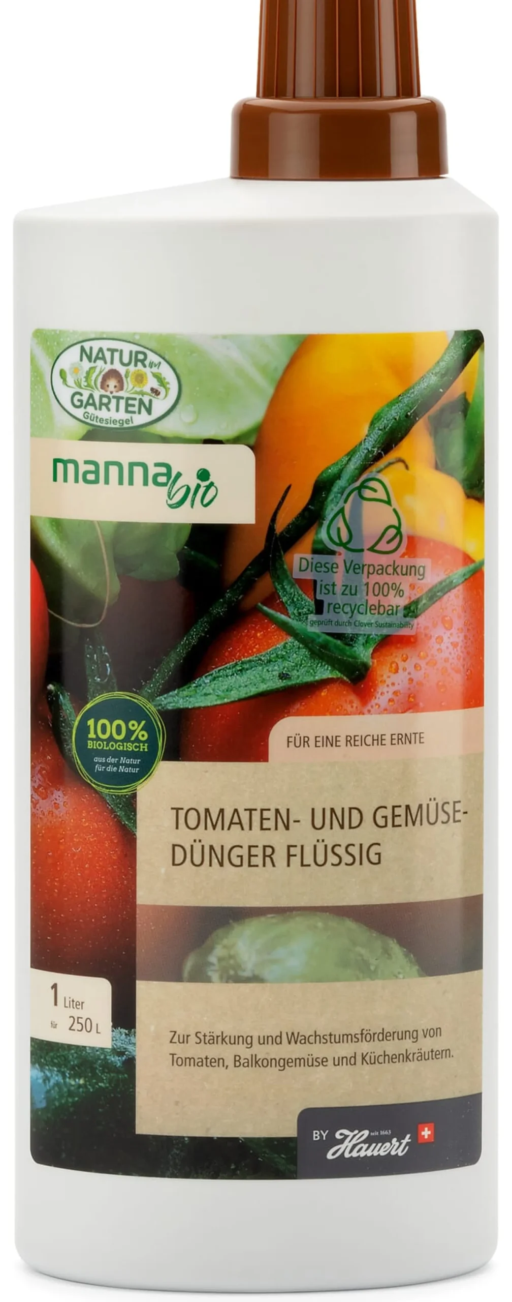 Dieser organische Flüssigdünger versorgt Tomaten und andere fruchttragende Gemüse während der ganzen Saison mit allen erforderlichen Nährstoffen – und insbesondere mit Kalium. Unerlässlich ist Kalium vor allem für die Fruchtbildung, darüber hinaus stärkt es aber auch die Pflanze als Ganzes, verhilft ihr zu mehr Widerstandskraft und trägt dazu bei, dass sie ausreichend Wasser aufnehmen kann. Der Tomatendünger enthält zusätzlich eine Vinasse (ein Nebenprodukt aus der Zuckerrübenverarbeitung), die aufgrund des enthaltenen Restzuckers die Bodenorganismen aktiviert und dadurch eine ausgezeichnete Startwirkung entfaltet, sowie Pflanzenhormone, die das Wachstum begünstigen. Als Flüssigdünger ist er ganz unkompliziert auszubringen: einfach ein bis zwei Deckelfüllungen regelmäßig ins Gießwasser geben.