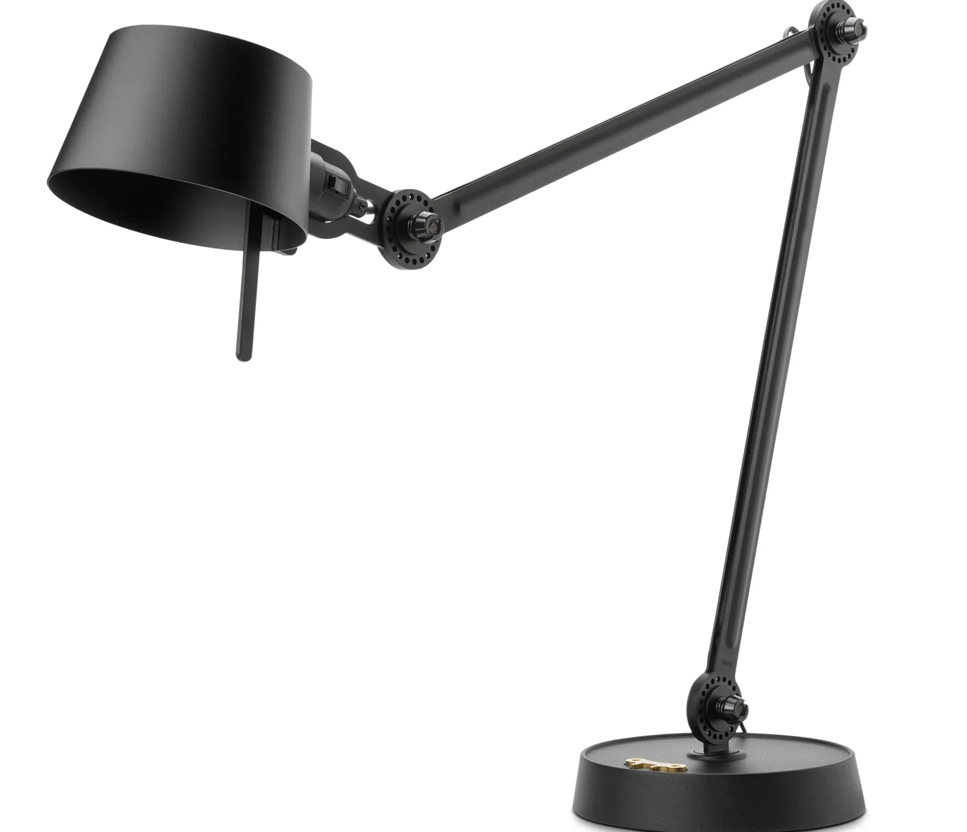 Die Schreibtischleuchte Bolt ist im Fuß um 360° drehbar gelagert. Durch die relativ langen Arme und die drei vielfach verstellbaren Gelenke lässt sich die Leuchte so variabel ausrichten, dass sie an fast jeder gewünschten Stelle auf dem Schreibtisch gezielt Licht spendet.