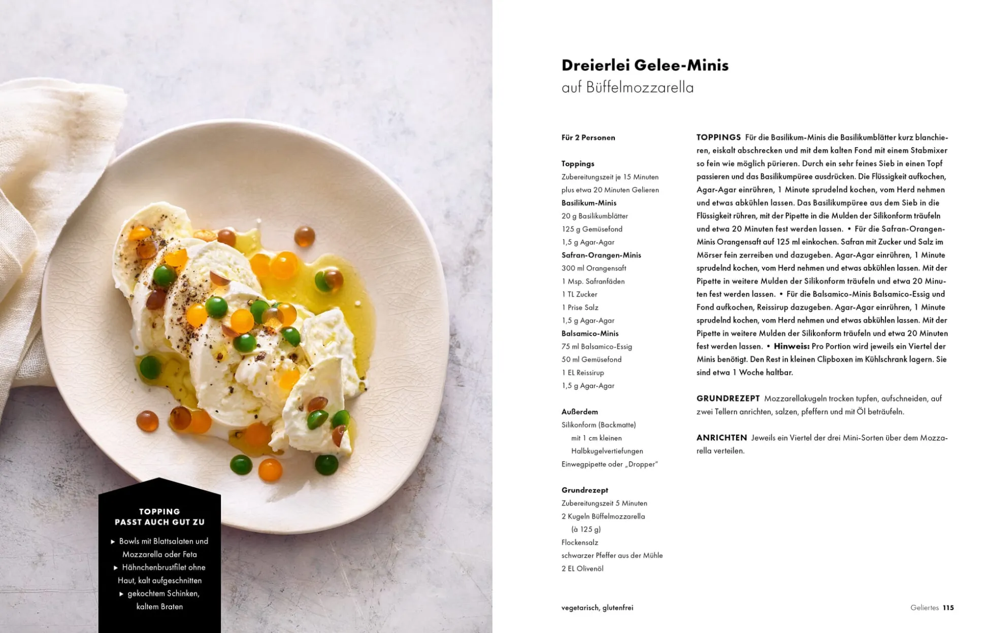 Im Fokus dieses Buches stehen jedoch die raffinierten Toppings, die mit Geschmack, Optik und Textur brillieren. Und weil Platzverschwendung so gar nicht zur Bestseller-Kochbuchautorin Bettina Matthaei und zu ihren fein ausgewogenen Rezepten passt, serviert sie Toppings immer mit spannenden Unterlagen, die für sich genommen schon eines Kochbuchs würdig sind. Ein Genuss für die Geschmacksnerven!