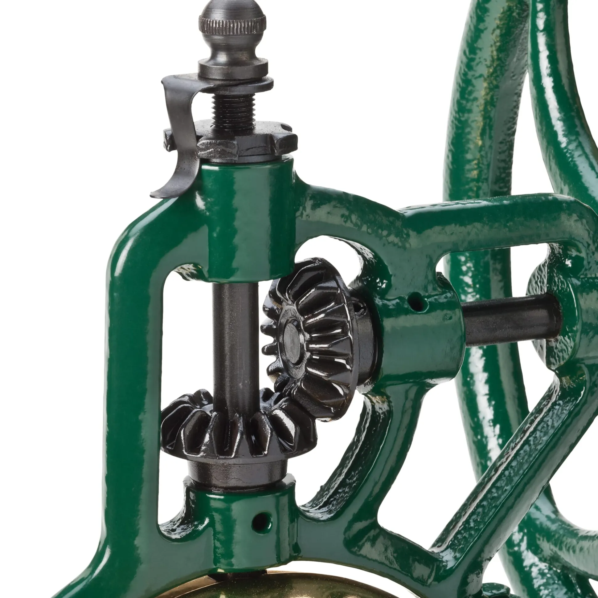 Vom arbeitssparenden Nutzen des mechanischen Schwungradprinzips kann man sich hier bei einer geradezu spielerischen, dabei geschmacks- und genussfördernden Tätigkeit überzeugen: dem zeitgerechten Mahlen der Kaffeebohnen. Dieses schöne alte italienische Gerät macht die weithin ungeliebte Arbeit fast zu einem Vergnügen. Die schwere Handmaschine ist aber auch optisch ein Ereignis: Körper, Schwungrad und Zahnräder sind aus Gusseisen, das Mahlwerk ist aus geschmiedetem Stahl, Kurbelgriff und Sockel sind aus Buchenholz. Das Mahlwerk ist stufenweise von fein für Espresso bis grob für Filterkaffee verstellbar.