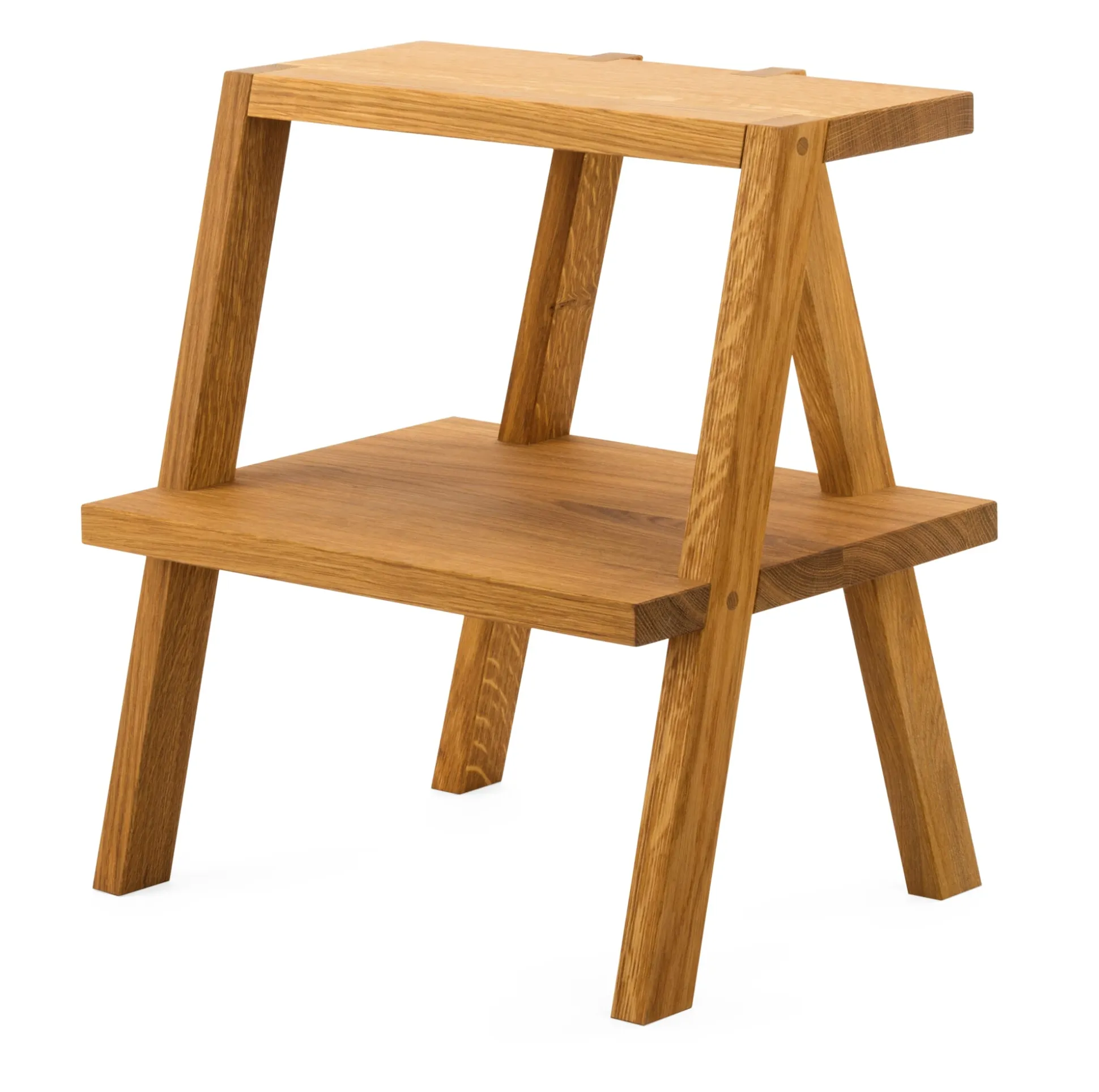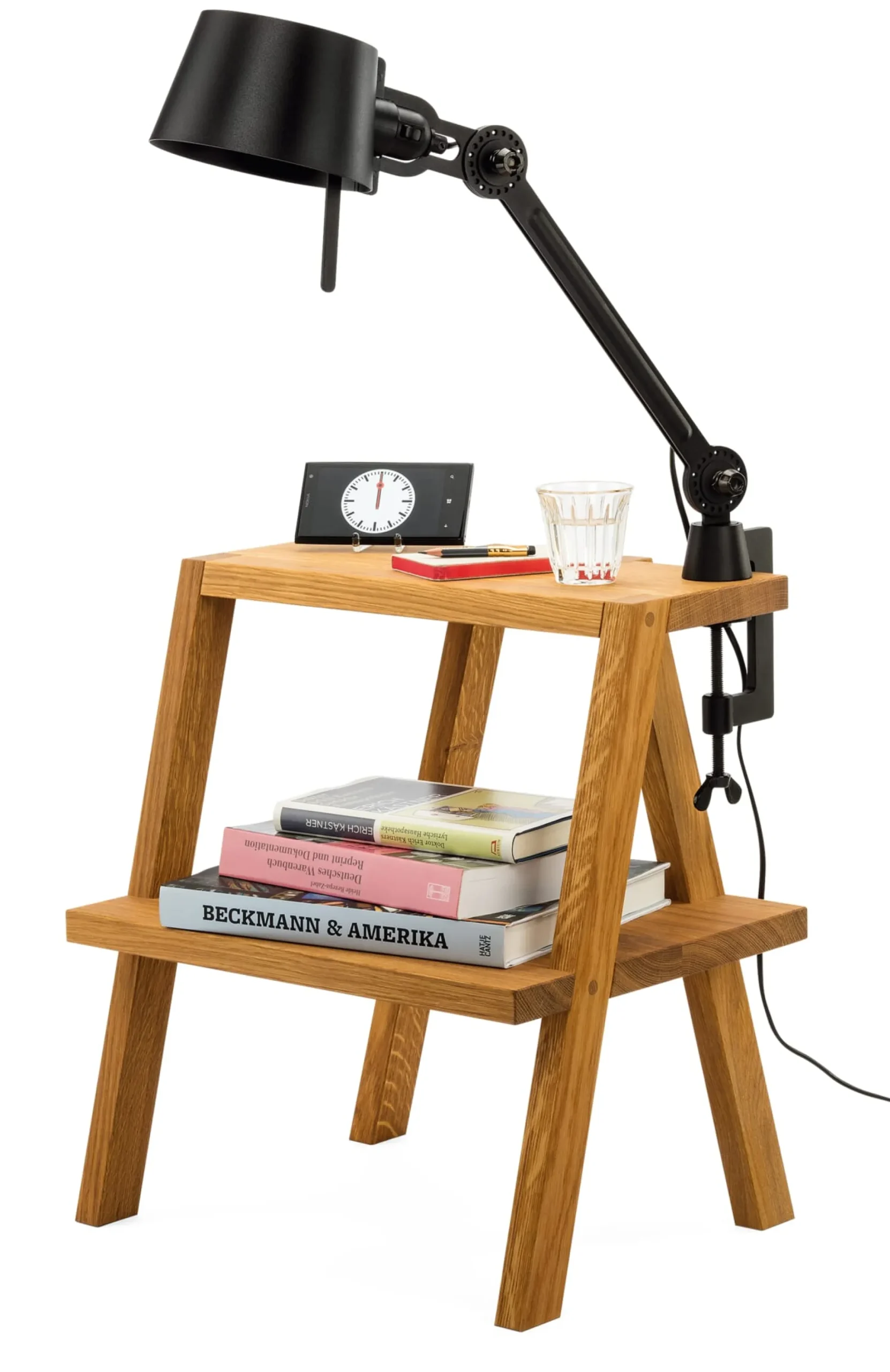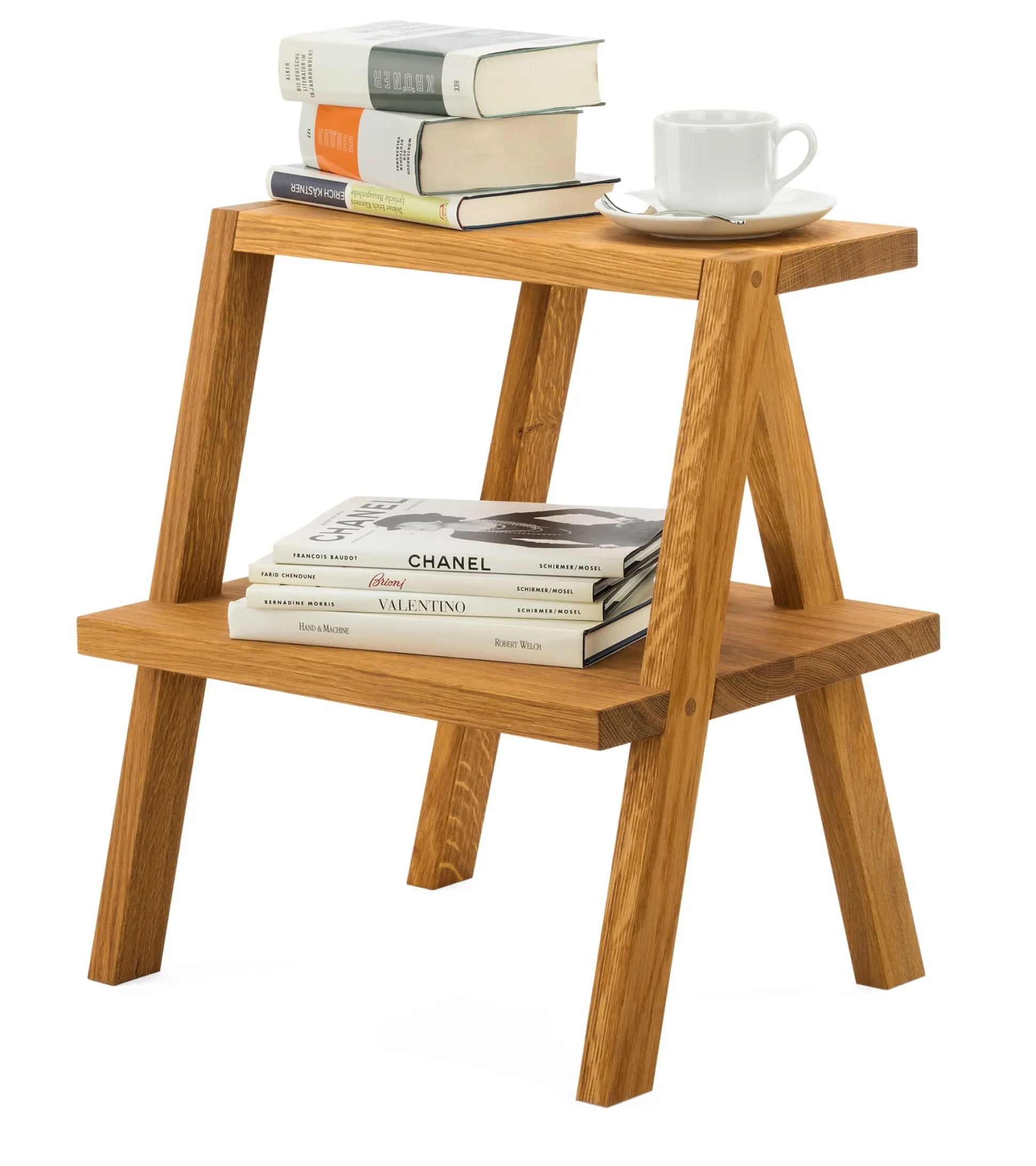 Sitz- und Tritthocker sowie Beistell- und Nachttisch in einem: Dieses kleine Universalmöbel aus massivem Holz ist vielseitig einsetzbar und überzeugt vor allem durch seine haltgebende Konstruktion: Damit das Möbel auch größeren Belastungen standhält (etwa in seiner Funktion als Tritt), ist es: