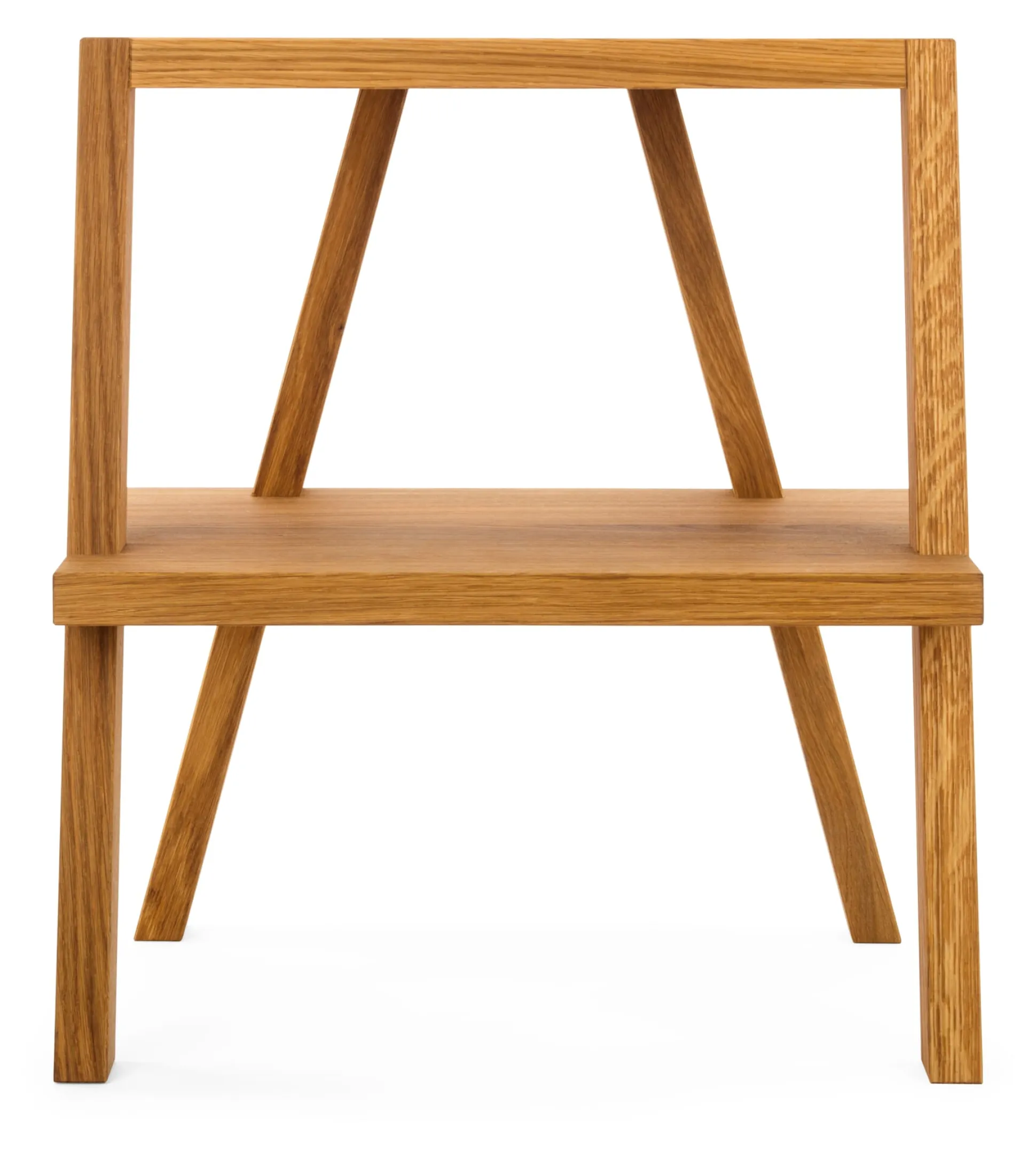 Gefertigt wird regional in Oberbayern, das Holz – meist Eiche, Esche und Buche – stammt aus zertifizierten Forstbetrieben. Der Kopf hinter Auerberg ist Christoph Böninger, einst beruflich Globetrotter, jetzt sesshaft gewordener Designverleger. Der in Designkreisen bestens vernetzte Böninger arbeitet in München und auf seinem Hof in Auerberg – daher der Name des Projekts – bei Bad Aibling. Und auch wenn Böninger für sein „Produktlabor“ einige Designer*innen und Architekt*innen um sich geschart hat – etablierte Größen stehen dabei gleichberechtigt neben aufstrebenden Talenten –, legt er immer noch selbst Hand an. Bisweilen ölt er Holzmöbel und macht sie versandfertig. Zu den bisher größten Erfolgen von Auerberg zählen übrigens der Tritthocker AEKI von Gerhardt Kellermann und die „Stumme Leiter“ von Christoph Böninger selbst, ein vielseitiger Hybrid aus Trittleiter und stummem Diener.