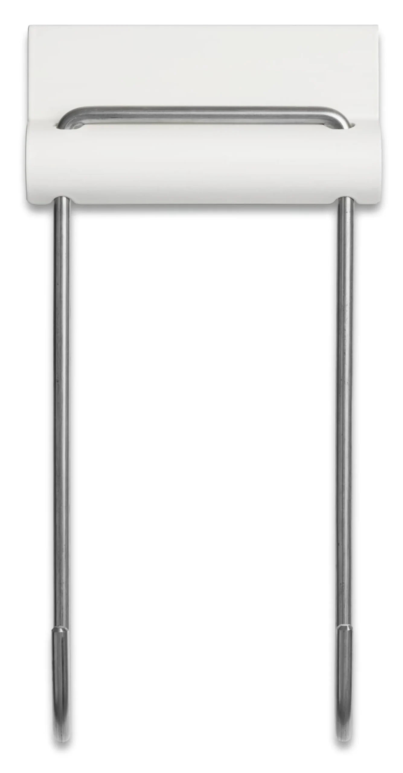 LOUIS ist ein Doppelhaken, der an jeder passenden Tür aufgehängt werden kann. Werkzeugfrei findet er seinen Platz, indem man sein gekantetes Blechteil über das Türblatt legt. In diesem Fall passt er auf ungefälzte Türblätter mit einer meist vorzufindenden Stärke von etwa 40 mm. Eine Version für gefälzte Türen im Maß von 20 mm ist als Alternative lieferbar. Die beiden Drahtenden bieten sich als vielfältige Helfer an – im Bad für Handtücher, im Schlafraum für Wäsche und an der Flurtür für Jacke, Tasche und Schal. Wie der Aufhänger zu seinem Namen kam? Gestalterische Referenz bei der Arbeit an LOUIS war die millionenfach verbreitete Papierklammer, vor Jahrzehnten vom amerikanischen Architekten Louis E. Baltzley erdacht. Eine kleine, späte Hommage.