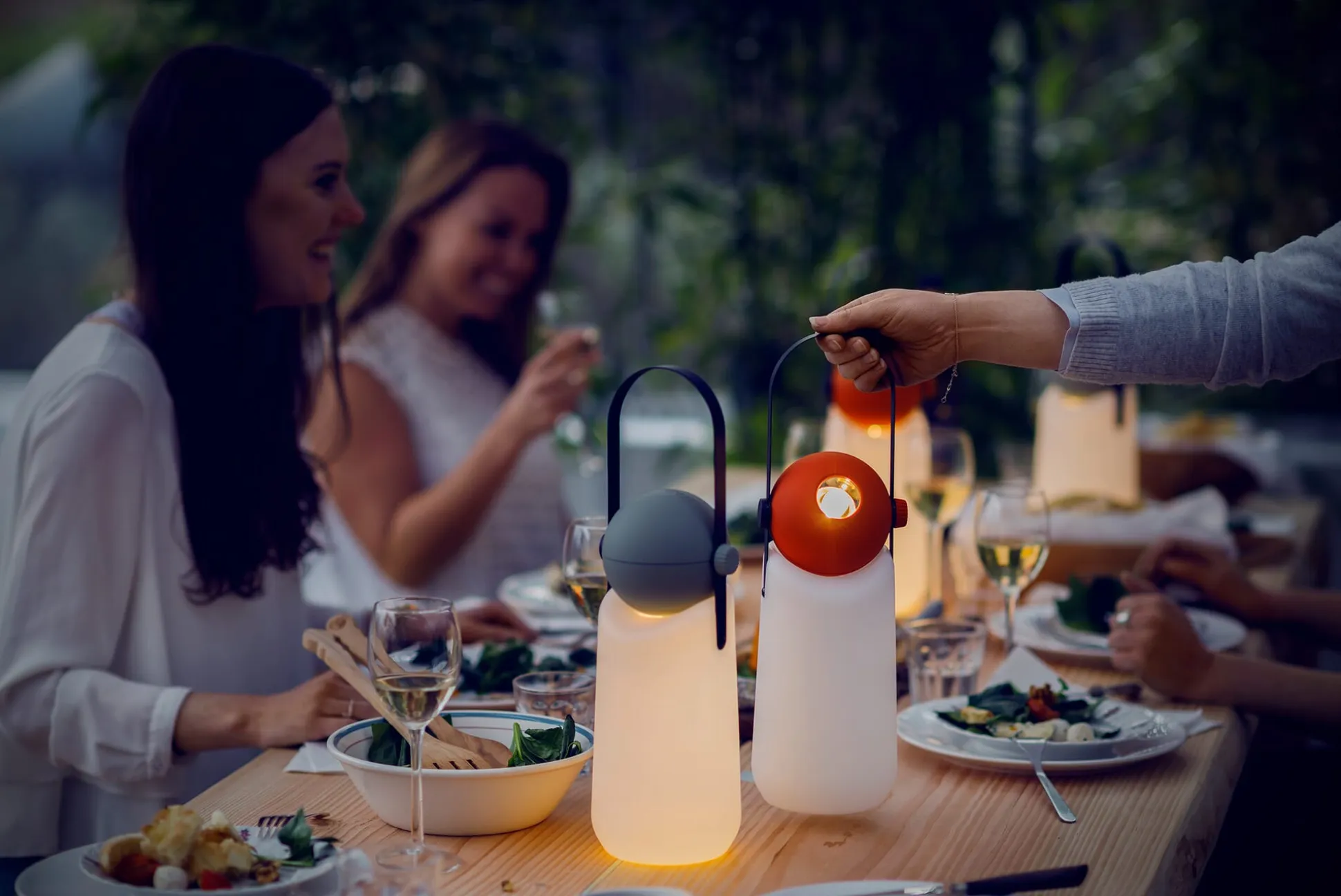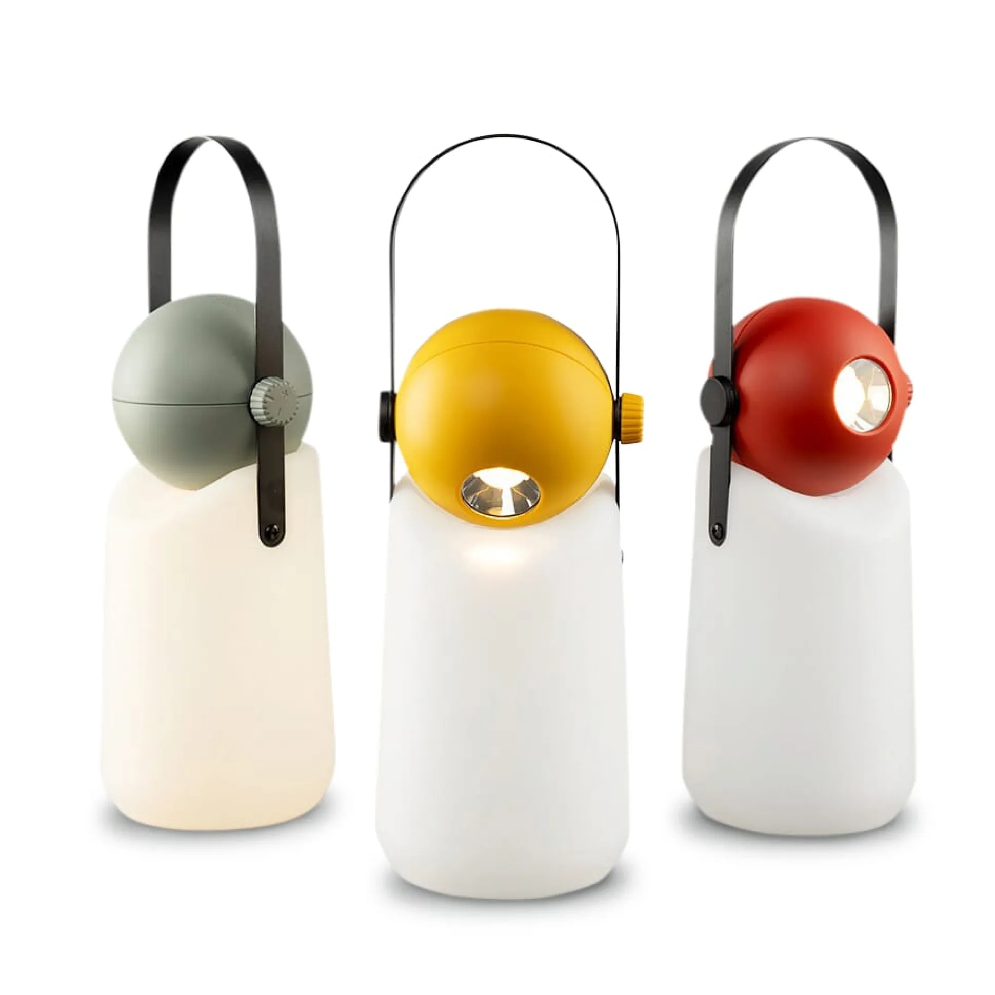 GUIDELIGHT ist wahlweise kleiner Spot oder atmosphärisches Rundumlicht, denn je nachdem wie der kugelförmige Leuchtenkopf gedreht wird, wirft er ein fokussiertes, direktes Licht oder beleuchtet den formschönen Leuchtenkörper. Die warmweißen LEDs werden über einen integrierten Akku betrieben, der die kompakte Leuchte ortsunabhängig einsetzbar macht – am Metallbügel lässt sie sich gut transportieren oder an einem Ast oder Haken aufhängen.