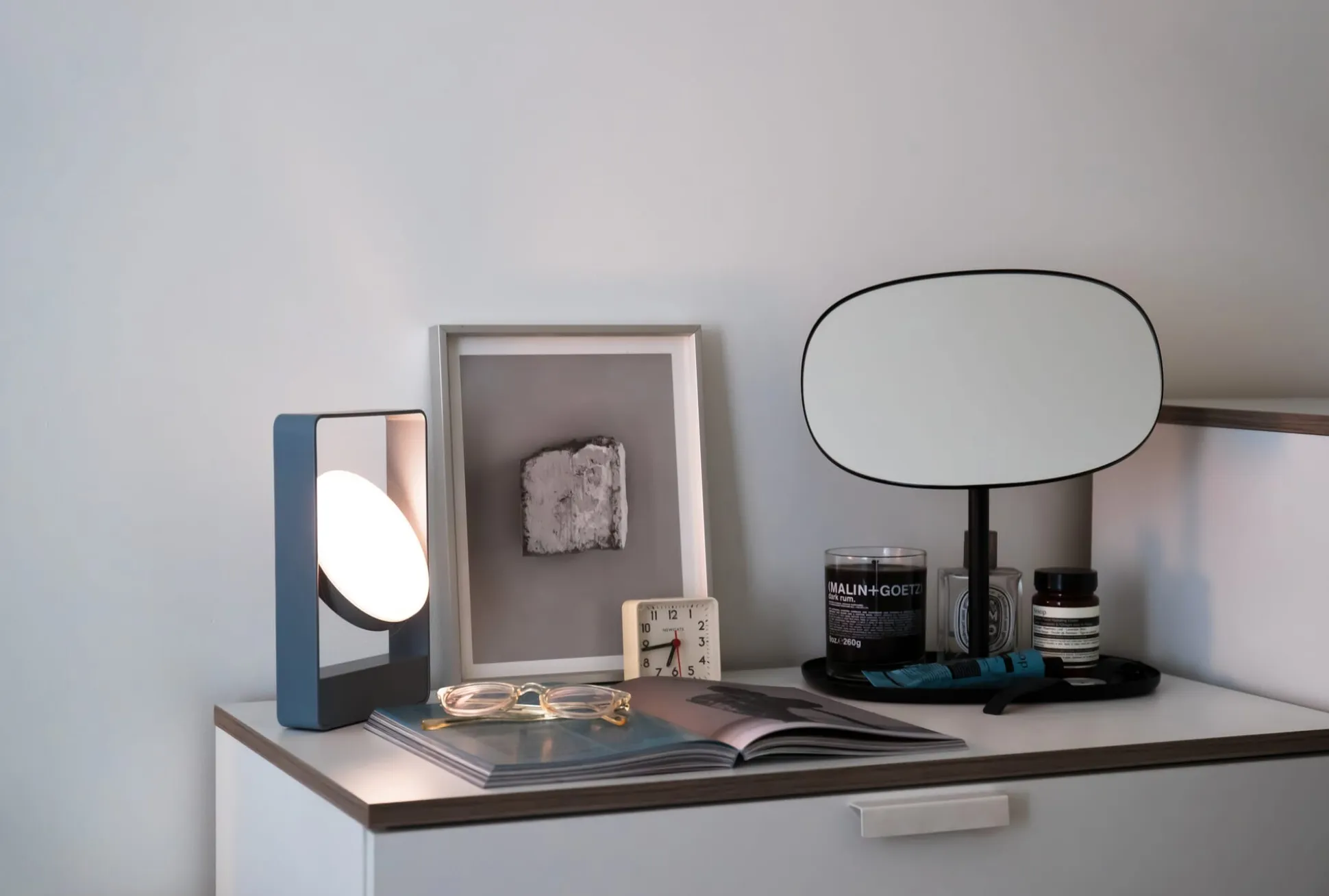 MOURO ist eine universell und kabellos einsetzbare Leuchte mit einem um die horizontale Achse um 360° drehbaren, kreisrunden Leuchtenkopf. An dem zum Griff ausgeformten oberen Teil des Gehäuses aus Stahl lässt sie sich leicht transportieren und beliebig platzieren. Dank des gewichtigen Fußes ist MOURO standfest und sorgt für Leselicht am Bett, Beleuchtung im Regal und an vielen anderen Plätzen. Die kompakte Leuchte ist in drei Lichtstärken über einen metallenen Sensorknopf am Leuchtenkopf schaltbar und erhält ihre Energieladung mithilfe des beiliegenden USB-Kabels.