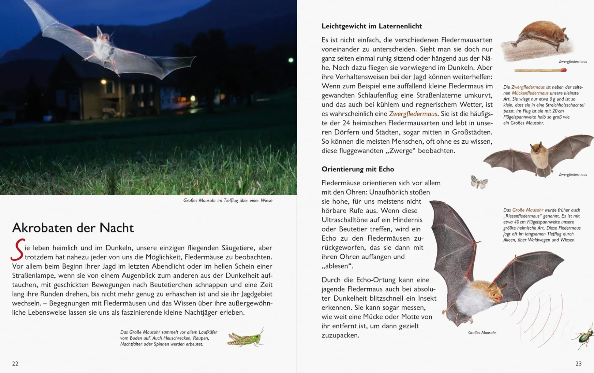 Wer kennt sie mit Namen: Haselmaus und Hufeisennase, Waldeidechse oder Mönchsgrasmücke? Wer möchte wissen, wie die Spur eines springenden Eichhörnchens aussieht, welche Vögel schon im Januar singen oder welche Krötenrufe wie Glocken klingen? Vom Rothirsch bis zum Feuersalamander vermittelt dieses reich illustrierte Naturbuch Kindern und auch Erwachsenen grundlegende Artenkenntnisse über die heimischen Säugetiere, Vögel, Reptilien und Amphibien und lockt mit vielfältigen Mitmachtipps raus in die Natur. Gipsabdrücke von Tierspuren herstellen, Nüsse knacken ohne Knacker, Vögel beobachten und vieles mehr: Ein kleiner Igel zeigt, wie’s geht. Kurz: Ein außergewöhnlich schönes Bestimmungs- und Entdeckungsbuch mit spannendem Naturwissen für Jung und Alt!