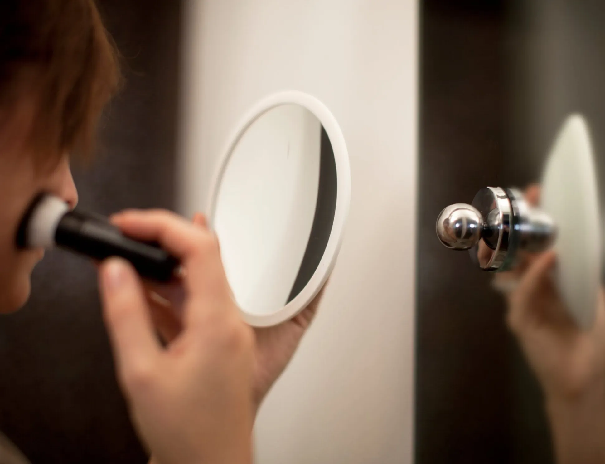 Material: Edelstahl, Silikon, Spiegelglas mit Vergrößerung
