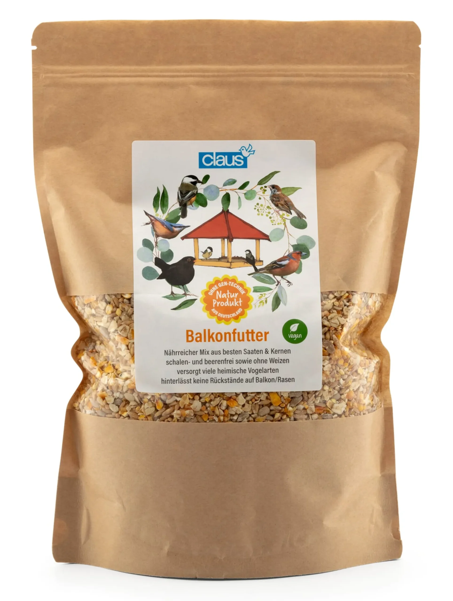 Falls Sie zu den Menschen gehören, die meinen, „Vögel füttern auf dem Balkon? – Na, da das verursacht doch eine Menge Schmutz!“ Dann haben wir hier die Lösung für Sie. Und zwar in Form einer Vogelfuttermischung, die eigens für die Versorgung von in der Stadt lebenden Wildvögeln gedacht ist. Die Bestandteile dieser Futtermischung werden vom Hersteller so aufbereitet, dass im und ums Vogelhäuschen herum keine Futterreste und Rückstände übrig bleiben. Kerne und Saaten werden vor dem Verpacken sorgfältig geschält, und getrocknete Beeren oder Fett sind gar nicht erst enthalten. Das ist eine saubere Angelegenheit! Und sollten Sie im Erdgeschoss oder nur ein, zwei Stockwerke höher wohnen und Bedenken hegen, dass Sie mit dem Vogelfutter auch Mäuse und Ratten auf Ihren Balkon (oder die Terrasse) locken: Seien Sie unbesorgt. Wo keine essbaren Reste, dort auch keine ungebetenen Gäste. Dieses Futter können Sie den Vögeln im Umfeld Ihrer Stadtwohnung das ganze Jahr über anbieten.