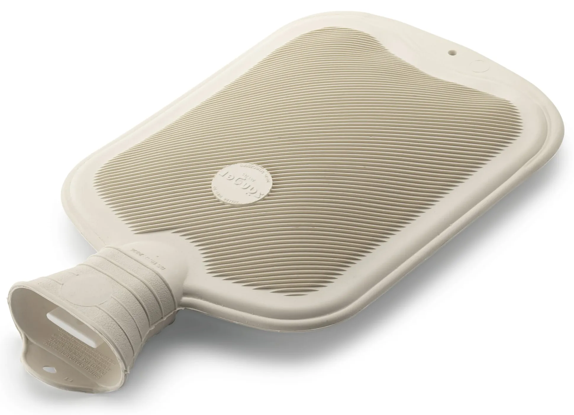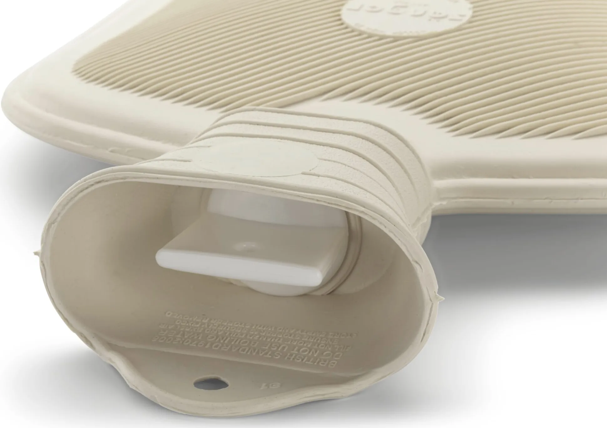 Der Körper ist einschließlich des Halsstückes aus Naturgummi zusammenhängend geformt – und kommt so ohne zusätzliche Naht aus, die brüchig werden könnte. Das vermessingte Gewinde lässt sich mit einer stabilen Verschlussschraube (aus Kunststoff) auslaufsicher verschließen. Mit einseitiger Lamellenoberfläche. In zwei Größen.