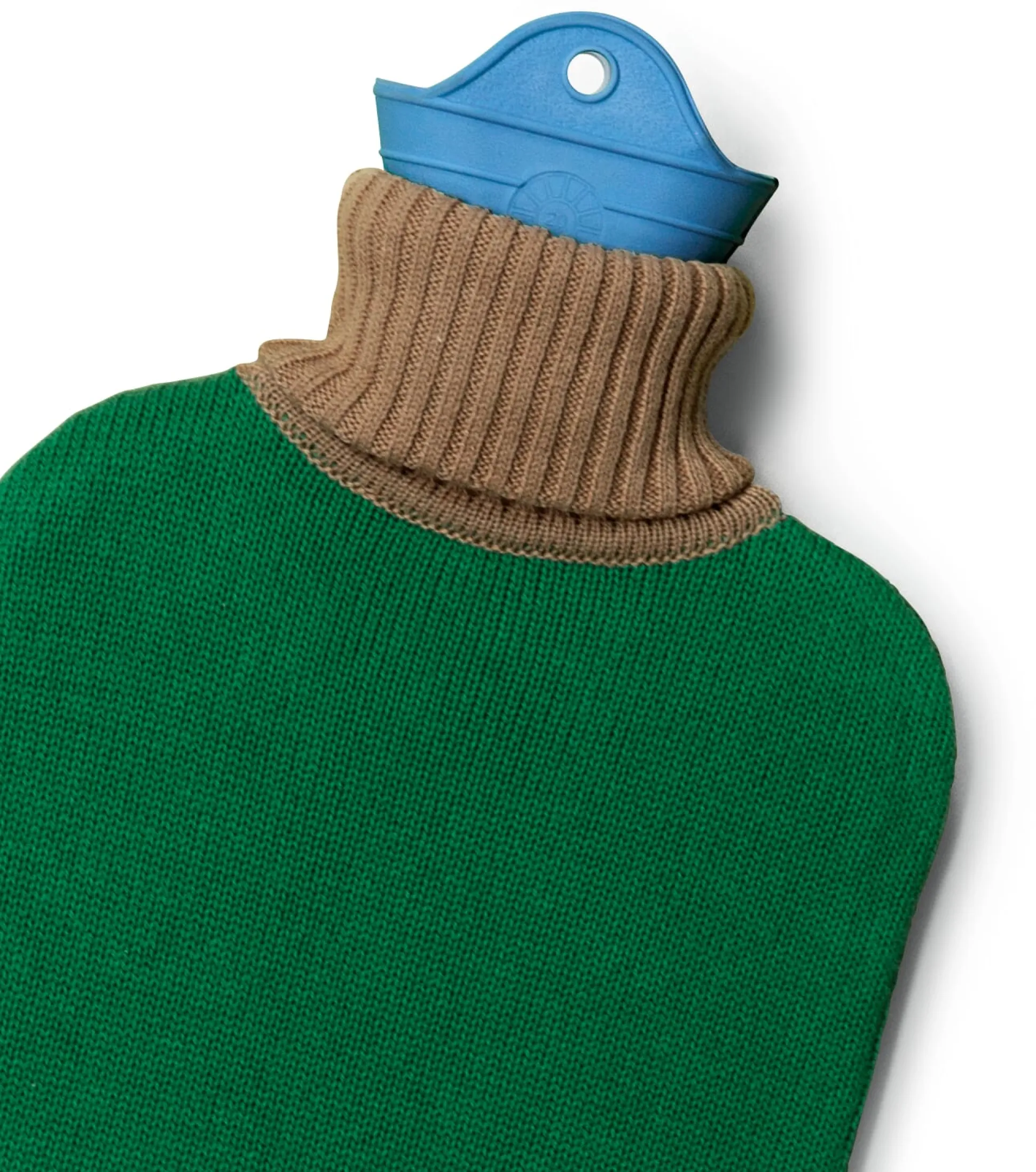 Klassisches Accessoire mit großer Aktualität: die Wärmflasche. SUITE vom gleichnamigen niederländischen Label mit einem Inlett aus Naturkautschuk und aus einem Strickbezug aus Baumwolle. So ist die Hülle schön weich und kratzt nicht. Wärme im Bett oder auf dem Sofa!