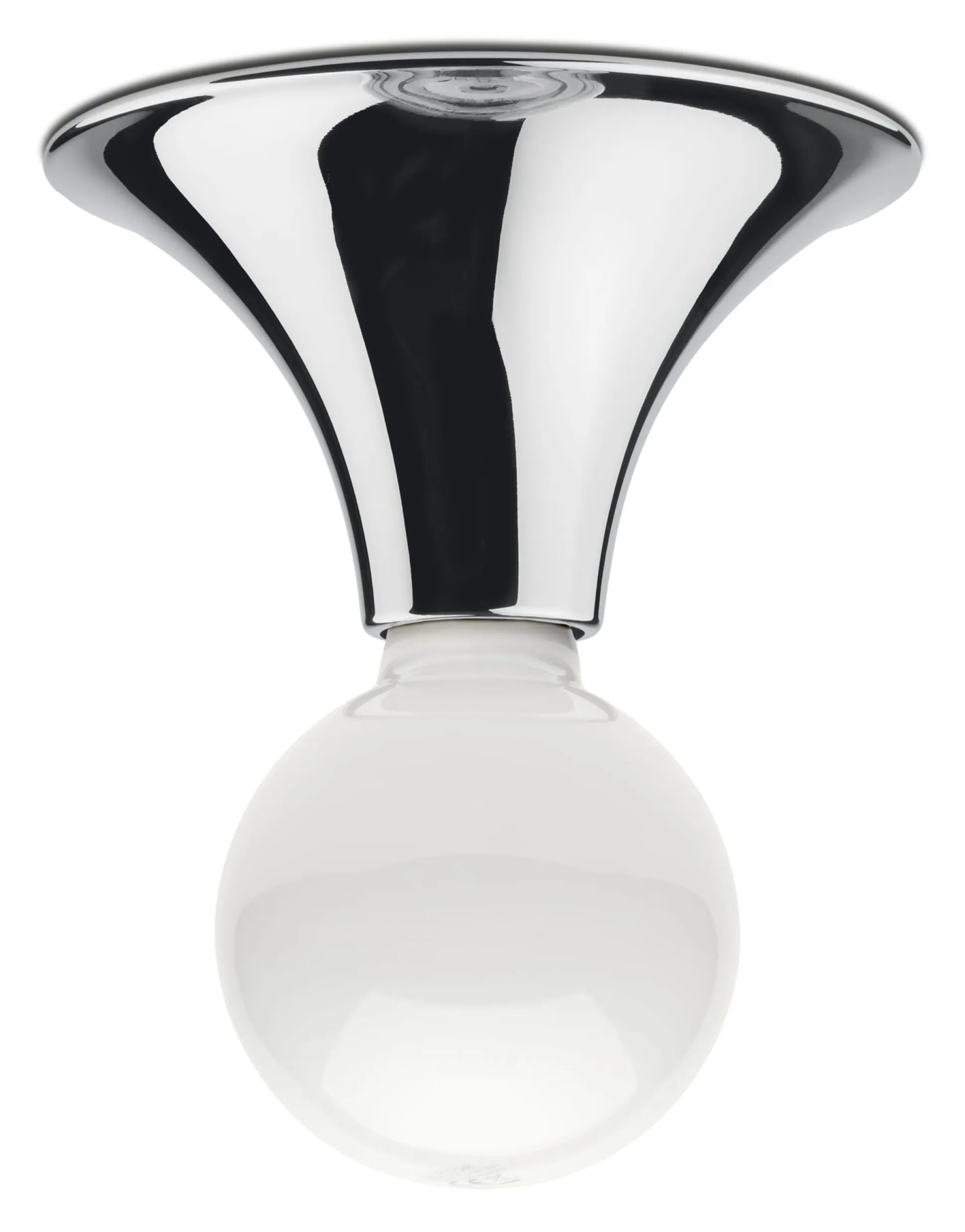 „Etna“ hat ihr Gestalter diese Wand- und Deckenleuchte getauft, und der Name beschreibt höchst treffend die Form des konisch gewölbten Leuchtenkörpers. Zur Bestückung empfehlen wir kopf- oder ringverspiegelte Globelampen.