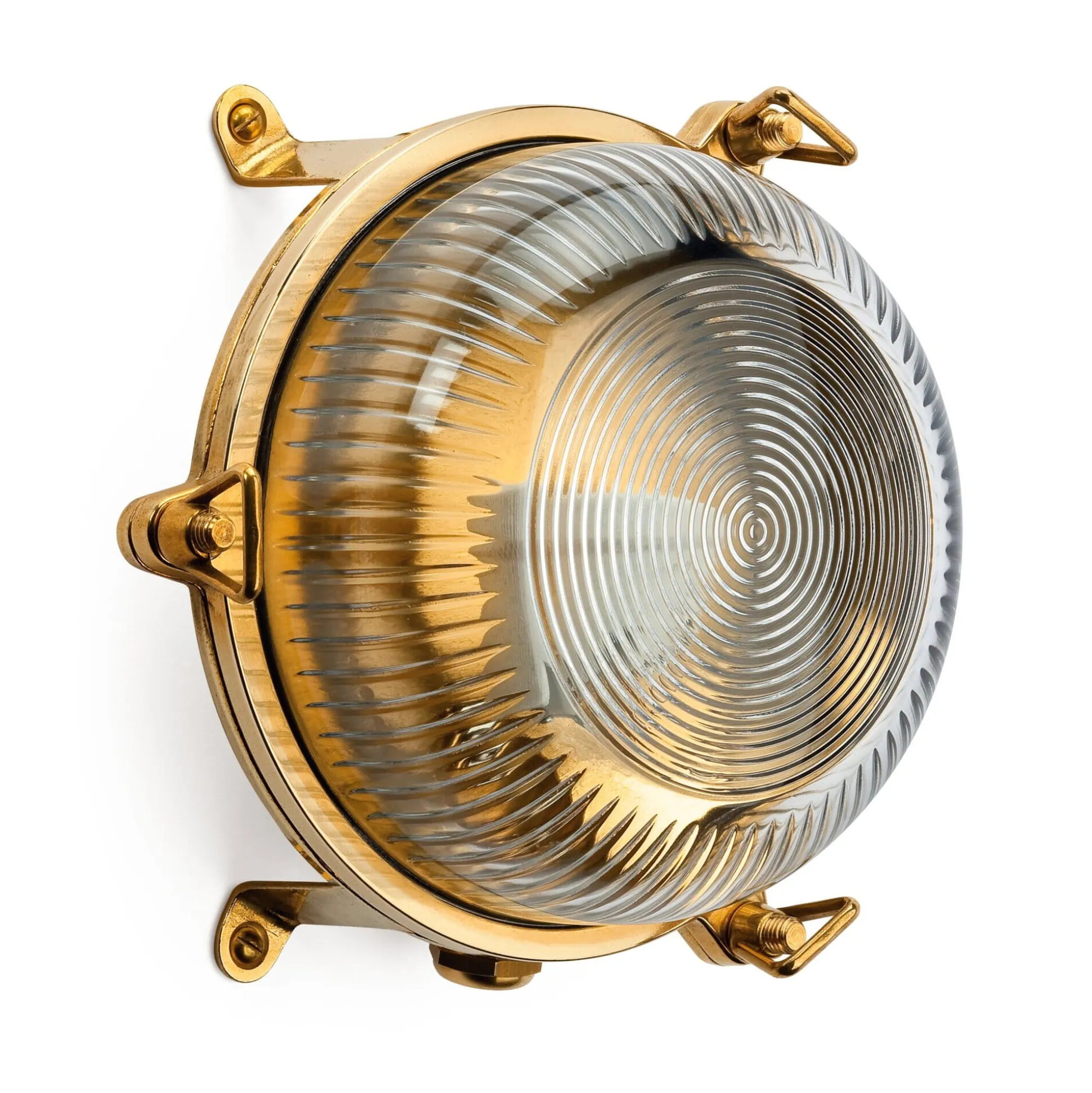 Seit Olims Zeiten werden am Iseosee bei Mailand diese wind- und wettererprobten Schiffsleuchten aus Messingguss und Glas gefertigt, die auf See schwerem Wetter, Salzwasser und – sofern sie mit einem Schutzgitter ausgestattet sind – selbst schlagenden Teilen trotzen. Für landseitige Außenanwendungen jeglicher Art sind die verblüffend günstigen Leuchten damit nicht nur bestens gerüstet, sondern geradezu überqualifiziert.